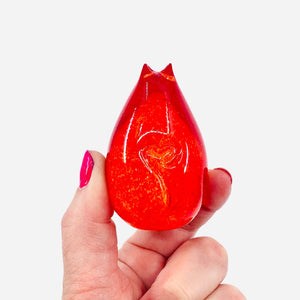 Every Little Glass Love Cat is sculpted by hand from hot glass at the Henrietta Glass studio in Pawtucket, RI - making each bird a little different from the flock.