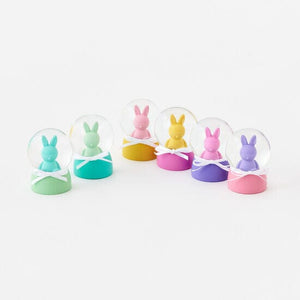 Celebrate easter with these adorable glass bunny snow globes. Each only measuring a cute 2 1/2" tall they are sure to brighten anyone's day!