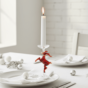 Enhance your homes holiday vibe with this sophisticated glass taper holder. Each piece is adorned with delicate reindeer icon, adding a whimsical flair. Ideal for gifting loved ones or impressing guests, it will bring a festive and charming touch to every gathering this season.