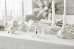 Add a touch of winter magic to your home with this adorable Snowman Globe Tealight Holder. Made from borosilicate glass, this holder features a handblown snowman inside, perfect for creating a cozy and festive atmosphere.