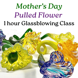 Learn how to work with molten glass in our 1 hour glassblowing class to make a pulled glass flower. Students will choose from a wide variety of color mixes to create your unique petal and stem combination!