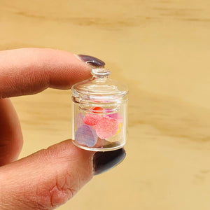 Because we all love tiny things, this miniature glass sweet jar features tiny tiny gum drops for you to gush over.