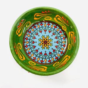 Handmade and hand painted in Turkey, each Bowl is intricately hand painted by Turkish artisans with multiple vibrant colors embedded into the heat-resistant raised surface. All designs are inspired from traditional Turkish artifacts going back several centuries.