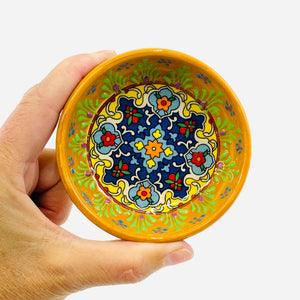Handmade and hand painted in Turkey, each Bowl is intricately hand painted by Turkish artisans with multiple vibrant colors embedded into the heat-resistant raised surface. All designs are inspired from traditional Turkish artifacts going back several centuries.