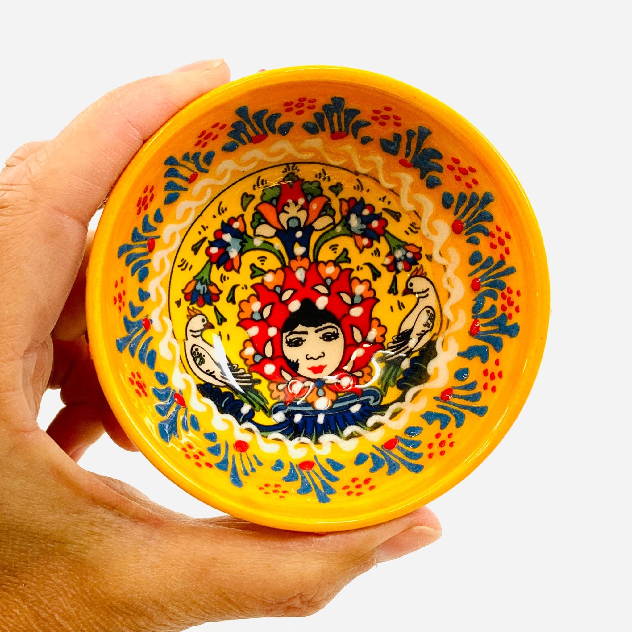 Handmade and hand painted in Turkey, each Bowl is intricately hand painted by Turkish artisans with multiple vibrant colors embedded into the heat-resistant raised surface. All designs are inspired from traditional Turkish artifacts going back several centuries.