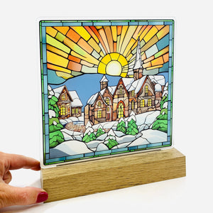 Light up your holiday season with this softly illuminated acrylic winter church scene that will transform any space into a festive showstopper. Packed with vibrant colors and an extremely subtle glow, this décor brings that magical holiday sparkle right into your home.