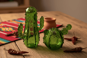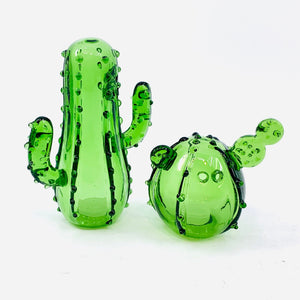 Add some fun decor to any buffet or dinner table with this cute set of blown glass Cacti Salt & Pepper shakers