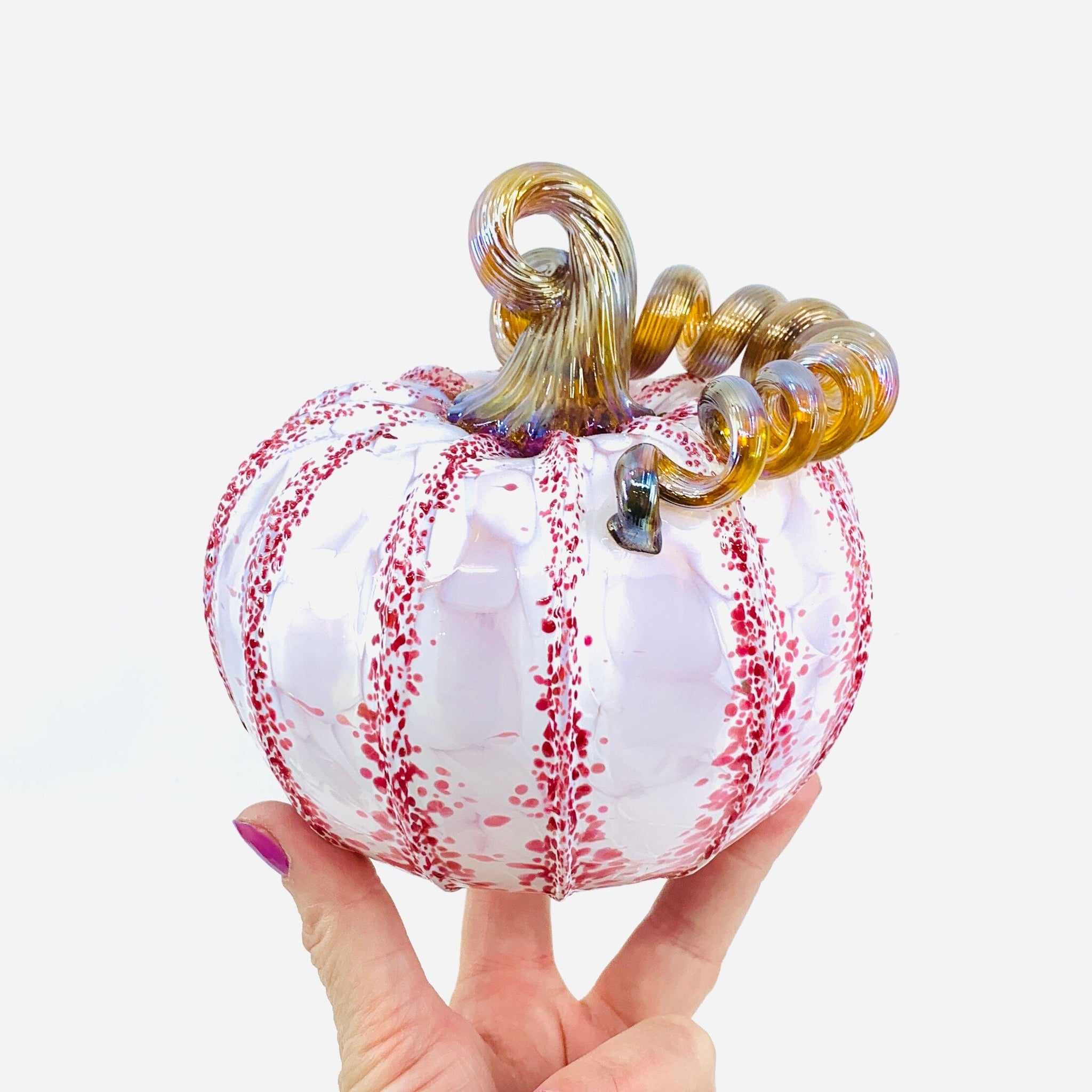 What is a Daily Pumpkin? Every day brings a fresh creation from our glassblowing studio! Our Daily Pumpkins are one-of-a-kind pieces where our artisans let their creativity run wild—no two are exactly alike. Each pumpkin showcases unique colors, patterns, and silhouettes, making yours truly special. Shape descriptors like "mini" or "squat" capture the vibe rather than precise measurements, so expect delightful variations in size and character. Check back daily for new arrivals!