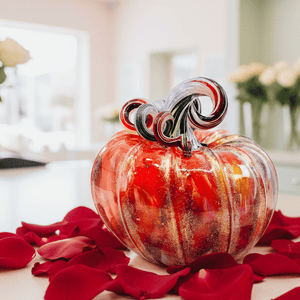 What's a daily pumpkin? Daily pumpkins are artfully created by our team of glassblowers. Shapes, sizes, colors, and patterns are at their whim! New pumpkins are posted... you guessed it... daily! Please be aware that descriptive terms (i.e. mini, squat) refer to shape more so than dimensions of our daily pumpkins due to the individuality of these pieces. Size and uniformity may vary.