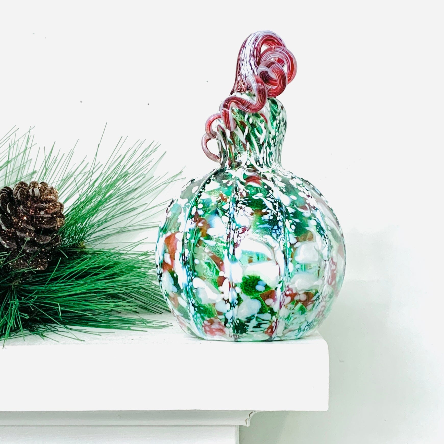 Introducing our Limited Edition Frosted Holly Gourd. This Winter design will bring a cozy, warm atmosphere to your home. Ships within two weeks from purchase