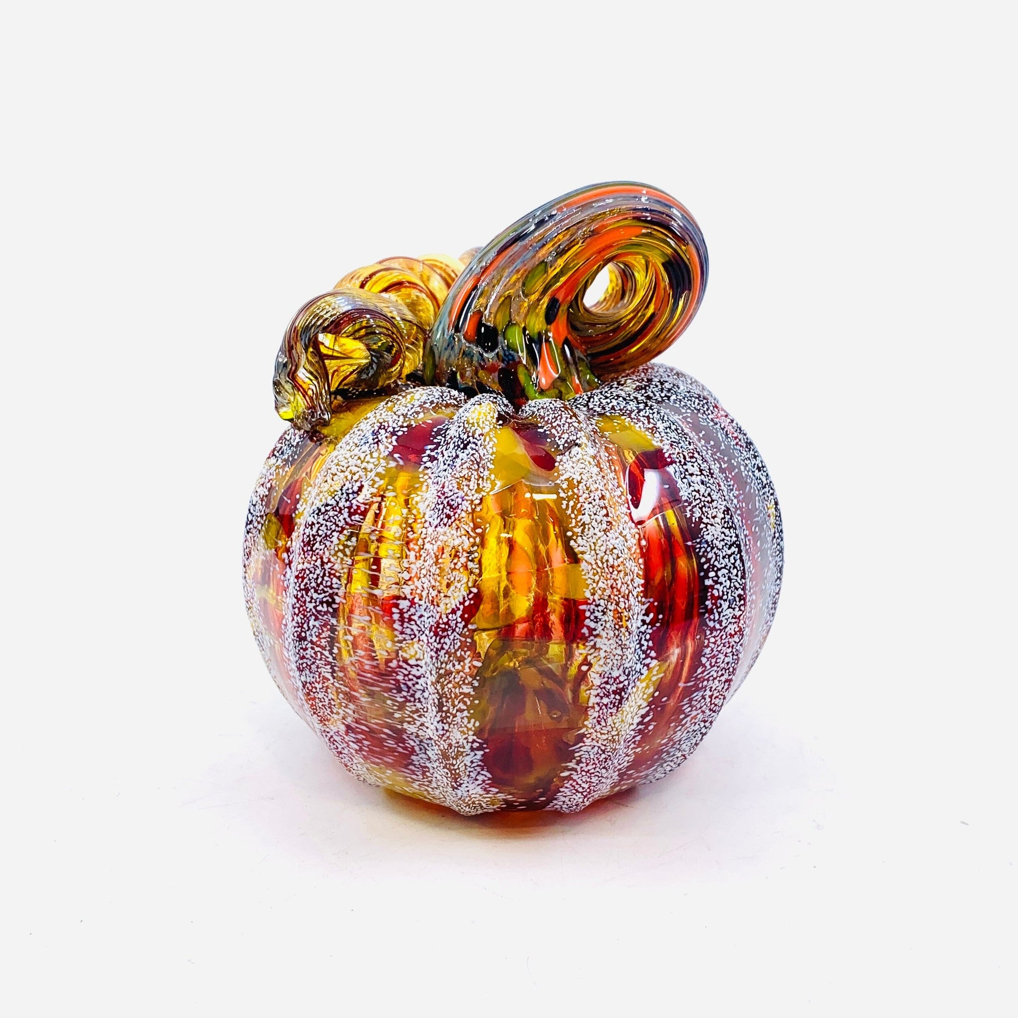 What is a Daily Pumpkin? Every day brings a fresh creation from our glassblowing studio! Our Daily Pumpkins are one-of-a-kind pieces where our artisans let their creativity run wild—no two are exactly alike. Each pumpkin showcases unique colors, patterns, and silhouettes, making yours truly special. Shape descriptors like "mini" or "squat" capture the vibe rather than precise measurements, so expect delightful variations in size and character. Check back daily for new arrivals!