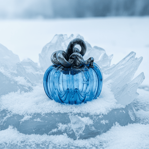 Each glass pumpkin is carefully handcrafted, making them all unique in color and shape. Pumpkins start out as a hot blob of glass, gathered off a pipe from a 2,200 degree furnace. The glassblower blows into the pipe to trap a bubble. Pumpkin ridges are added by mold. The glassblower blows again to form the pumpkin base. A metallic glass stem is added to the top. Next, they "cool" overnight in a 900 degree oven. And just like that, a pumpkin is born.