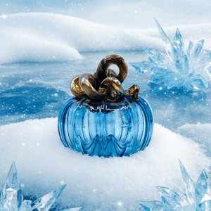 These magical, handmade glass pumpkins make a statement all year round with their rich colors, fine details, and playfully coiled gold stems. Handblown at the Luke Adams Glassblowing Studio in Norwood, MA studio. Pure magic.