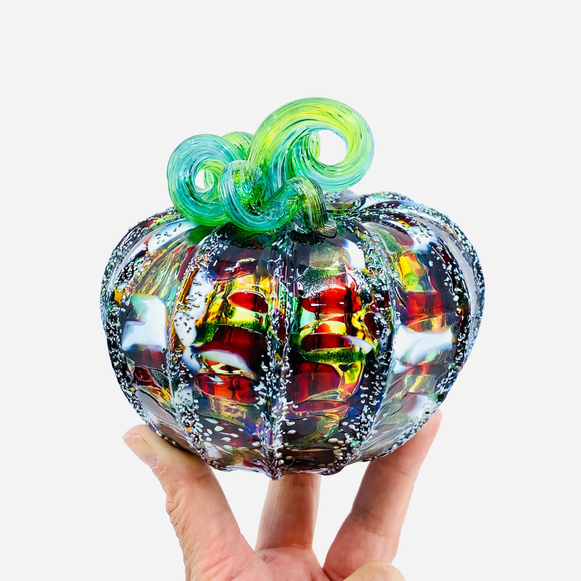 What's a daily pumpkin? Daily pumpkins are artfully created by our team of glassblowers. Shapes, sizes, colors, and patterns are at their whim! New pumpkins are posted... you guessed it... daily! Please be aware that descriptive terms (i.e. mini, squat) refer to shape more so than dimensions of our daily pumpkins due to the individuality of these pieces. Size and uniformity may vary.
