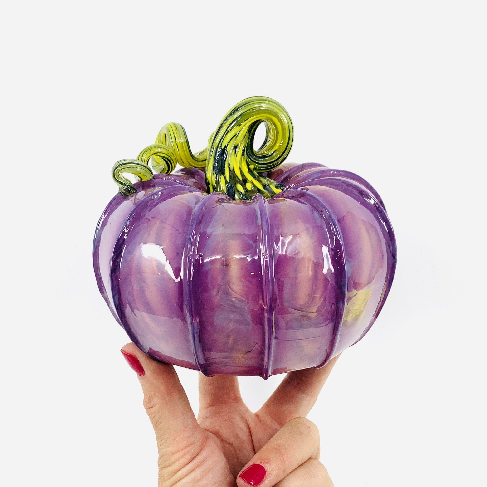 What is a Daily Pumpkin? Every day brings a fresh creation from our glassblowing studio! Our Daily Pumpkins are one-of-a-kind pieces where our artisans let their creativity run wild—no two are exactly alike. Each pumpkin showcases unique colors, patterns, and silhouettes, making yours truly special. Shape descriptors like "mini" or "squat" capture the vibe rather than precise measurements, so expect delightful variations in size and character. Check back daily for new arrivals!
