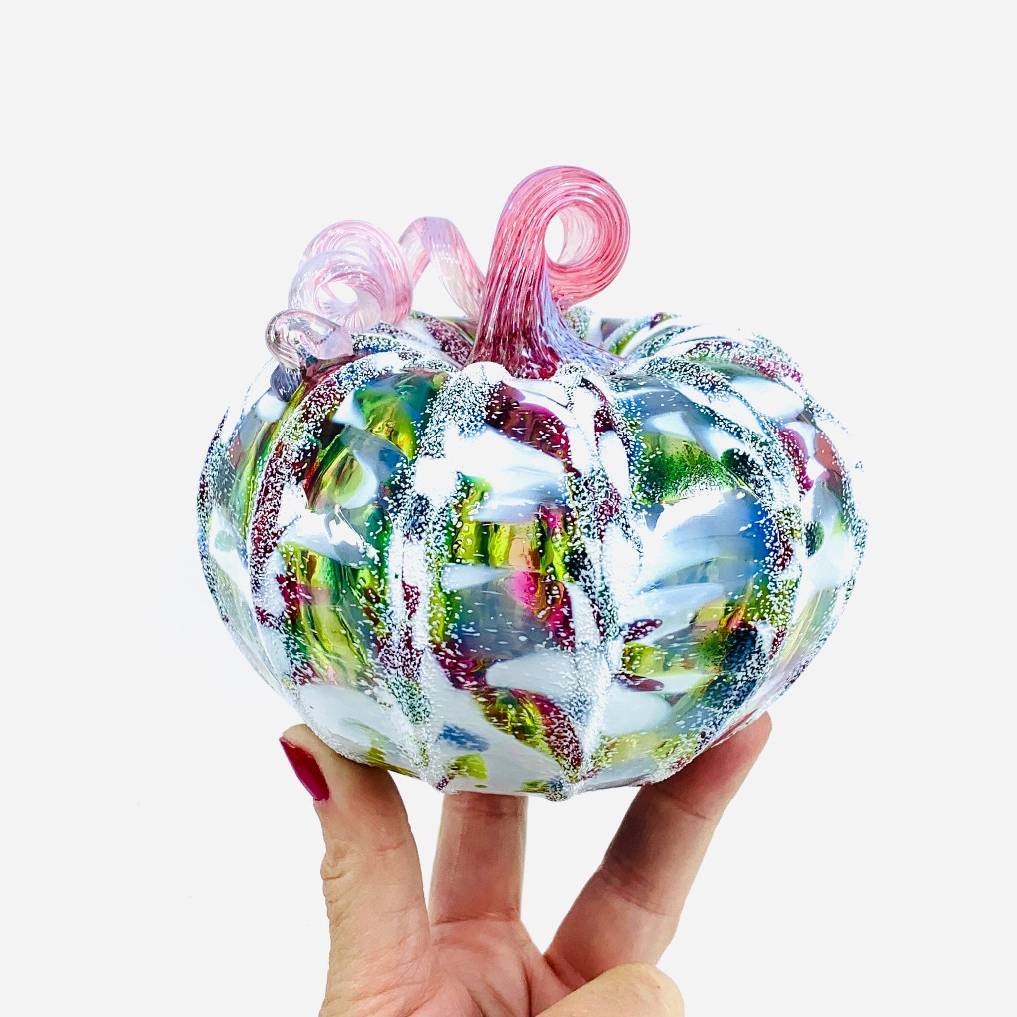 What is a Daily Pumpkin? Every day brings a fresh creation from our glassblowing studio! Our Daily Pumpkins are one-of-a-kind pieces where our artisans let their creativity run wild—no two are exactly alike. Each pumpkin showcases unique colors, patterns, and silhouettes, making yours truly special. Shape descriptors like "mini" or "squat" capture the vibe rather than precise measurements, so expect delightful variations in size and character. Check back daily for new arrivals!