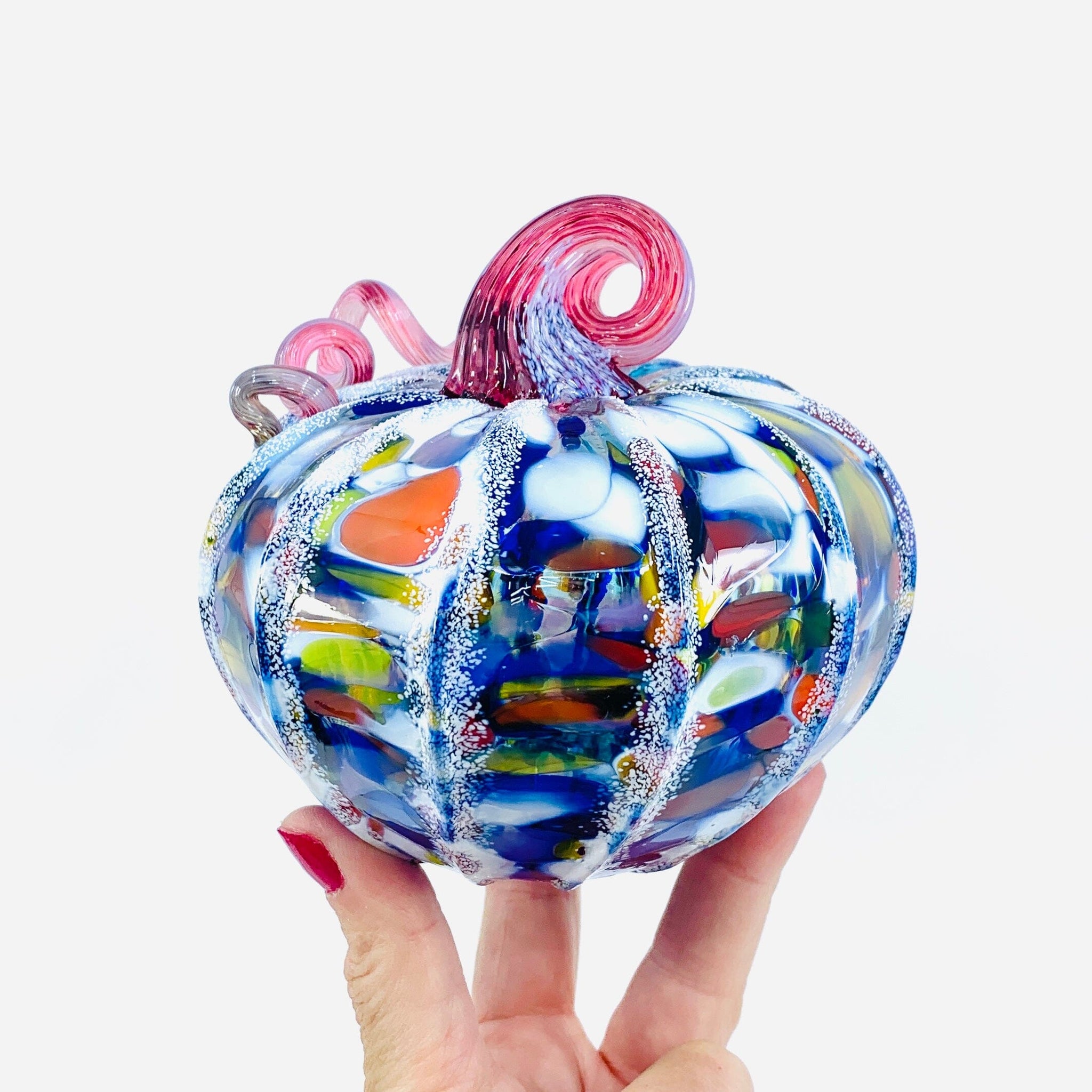 What is a Daily Pumpkin? Every day brings a fresh creation from our glassblowing studio! Our Daily Pumpkins are one-of-a-kind pieces where our artisans let their creativity run wild—no two are exactly alike. Each pumpkin showcases unique colors, patterns, and silhouettes, making yours truly special. Shape descriptors like "mini" or "squat" capture the vibe rather than precise measurements, so expect delightful variations in size and character. Check back daily for new arrivals!