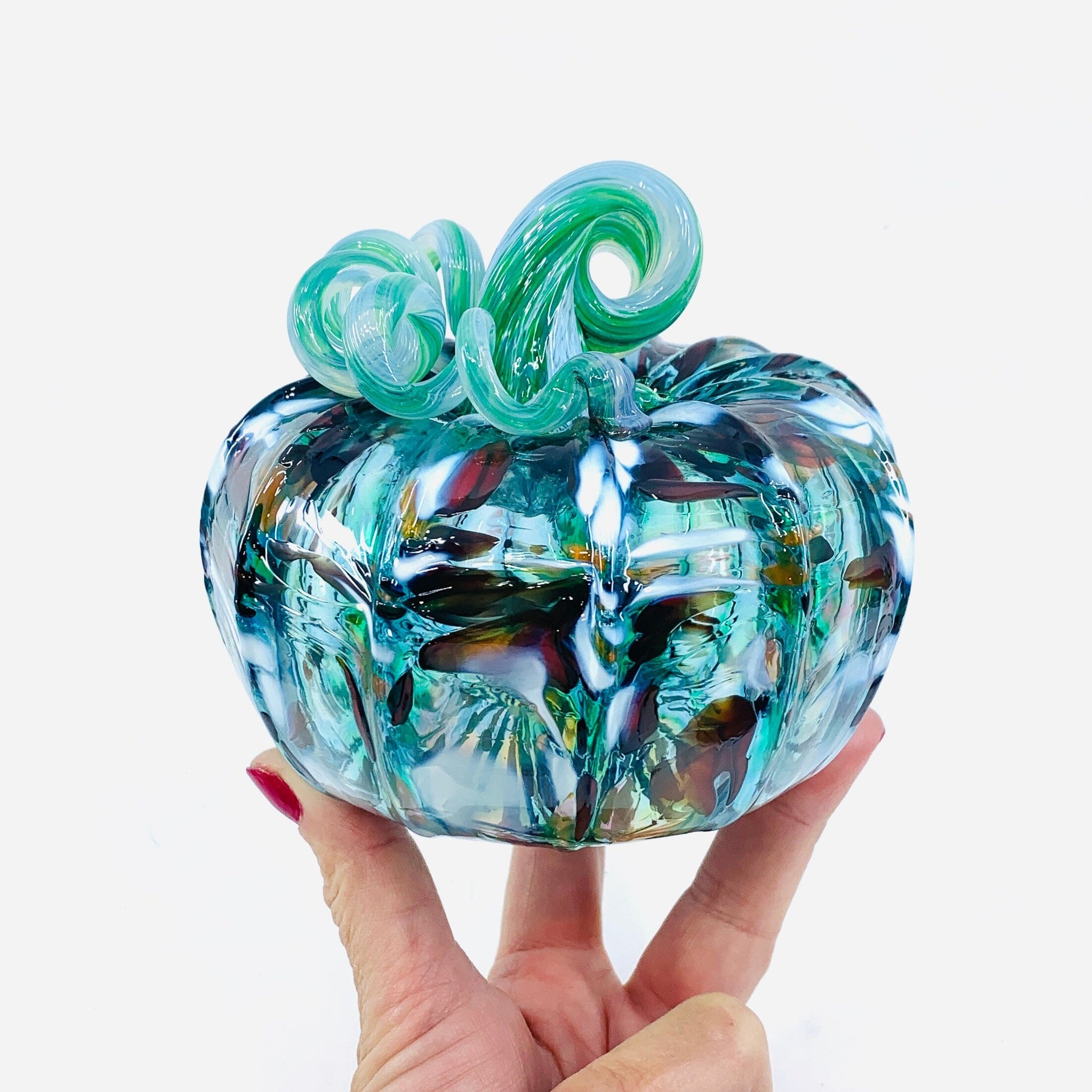 What is a Daily Pumpkin? Every day brings a fresh creation from our glassblowing studio! Our Daily Pumpkins are one-of-a-kind pieces where our artisans let their creativity run wild—no two are exactly alike. Each pumpkin showcases unique colors, patterns, and silhouettes, making yours truly special. Shape descriptors like "mini" or "squat" capture the vibe rather than precise measurements, so expect delightful variations in size and character. Check back daily for new arrivals!