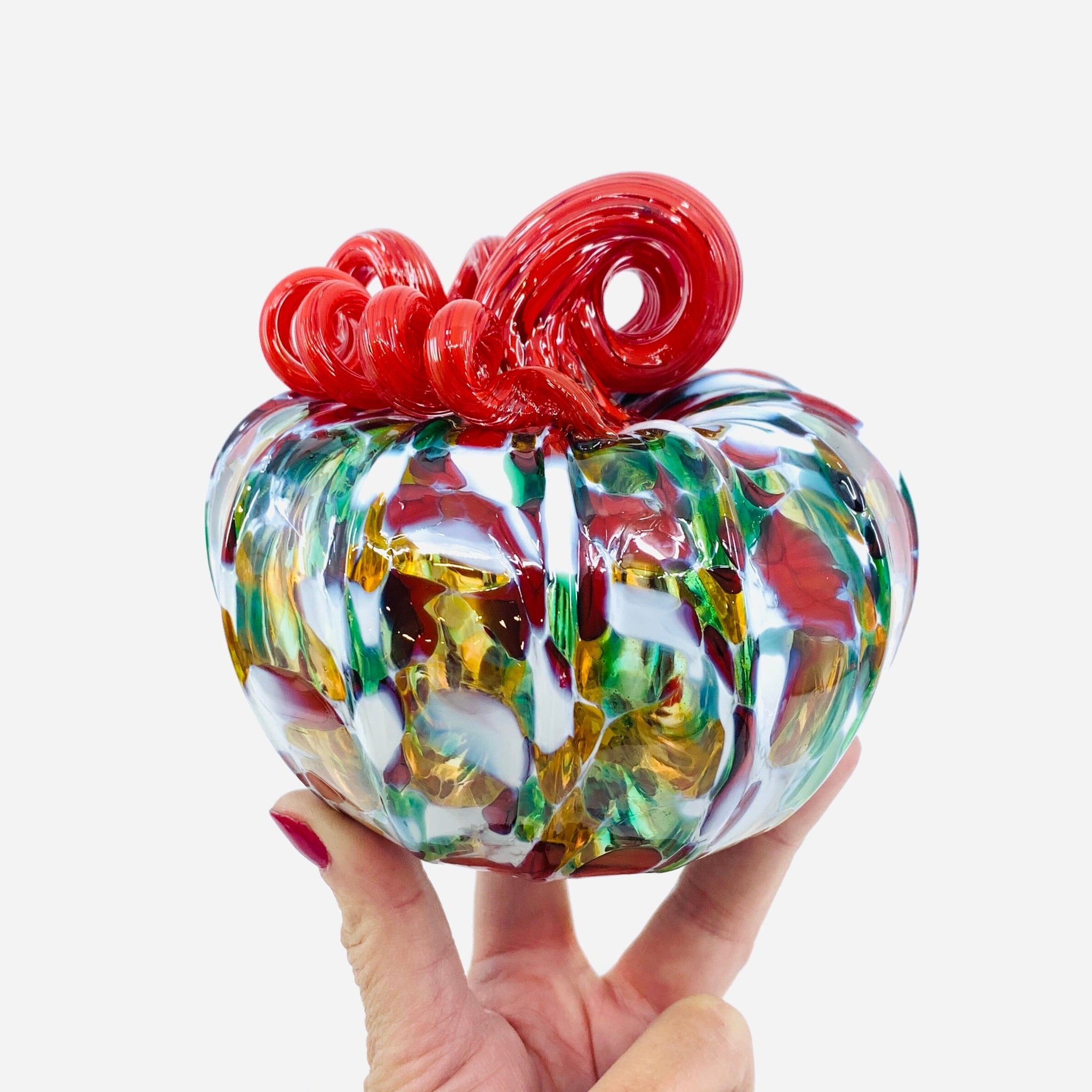 What is a Daily Pumpkin? Every day brings a fresh creation from our glassblowing studio! Our Daily Pumpkins are one-of-a-kind pieces where our artisans let their creativity run wild—no two are exactly alike. Each pumpkin showcases unique colors, patterns, and silhouettes, making yours truly special. Shape descriptors like "mini" or "squat" capture the vibe rather than precise measurements, so expect delightful variations in size and character. Check back daily for new arrivals!