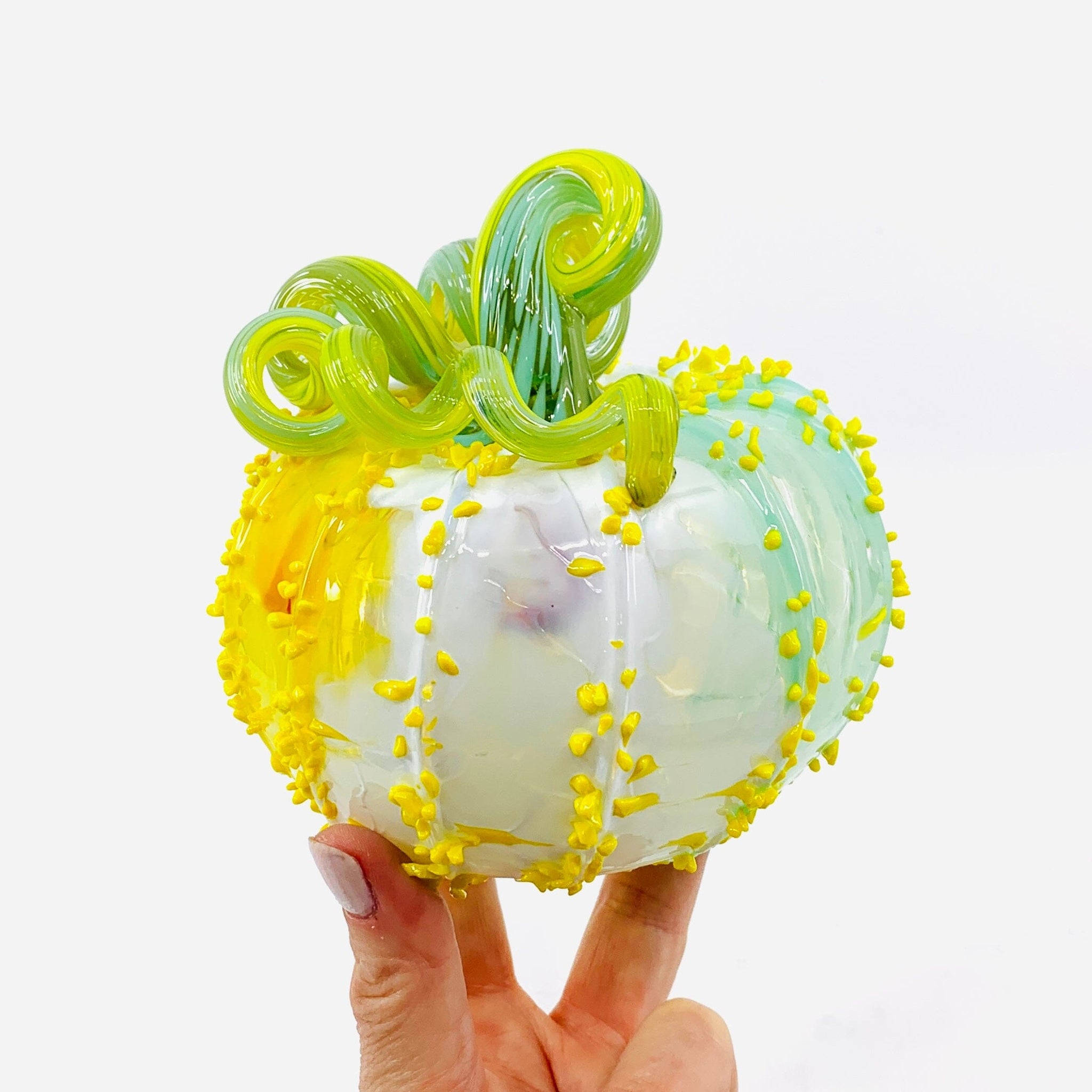 What is a Daily Pumpkin? Every day brings a fresh creation from our glassblowing studio! Our Daily Pumpkins are one-of-a-kind pieces where our artisans let their creativity run wild—no two are exactly alike. Each pumpkin showcases unique colors, patterns, and silhouettes, making yours truly special. Shape descriptors like "mini" or "squat" capture the vibe rather than precise measurements, so expect delightful variations in size and character. Check back daily for new arrivals!