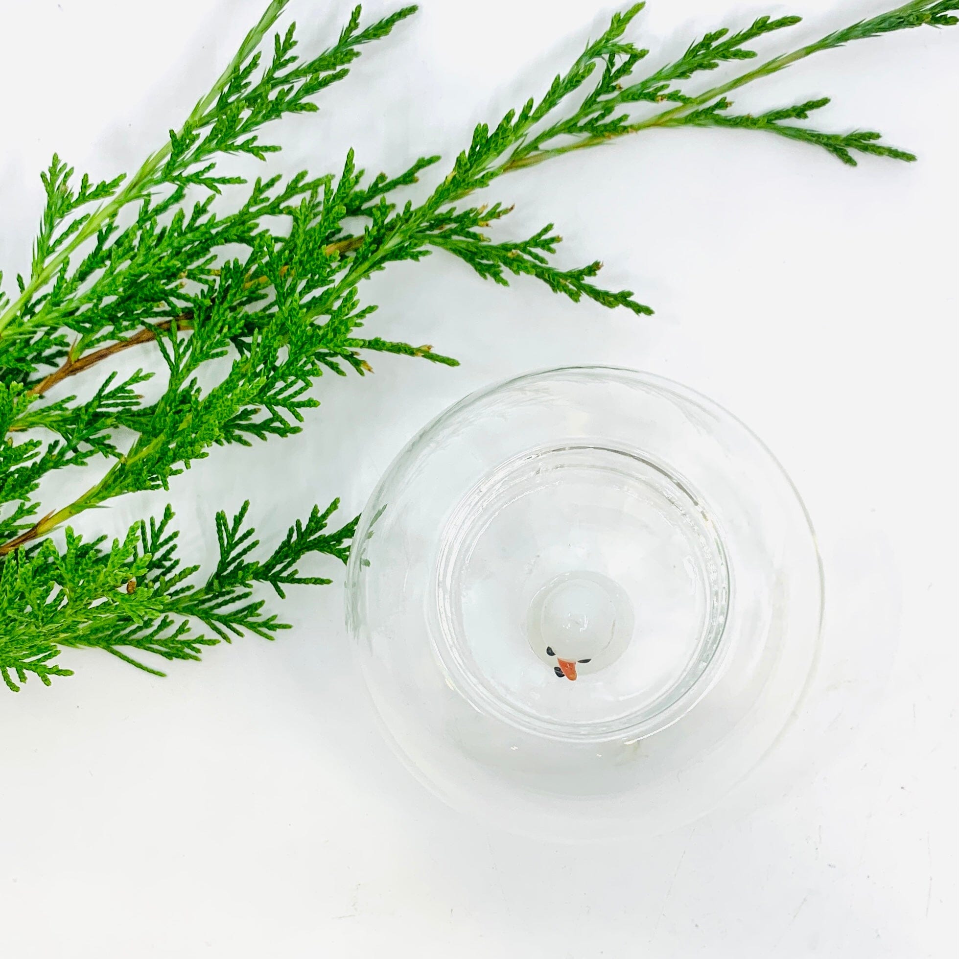 Add a touch of winter magic to your home with this adorable Snowman Globe Tealight Holder. Made from borosilicate glass, this holder features a handblown snowman inside, perfect for creating a cozy and festive atmosphere.