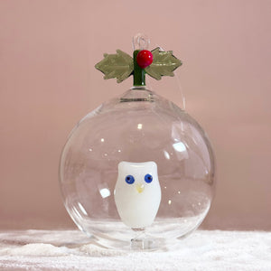 Glass Icon Ornament, Holly and Owl