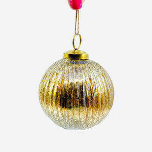 Mercury Glass Ribbed Crackle Ornament 22, Champagne