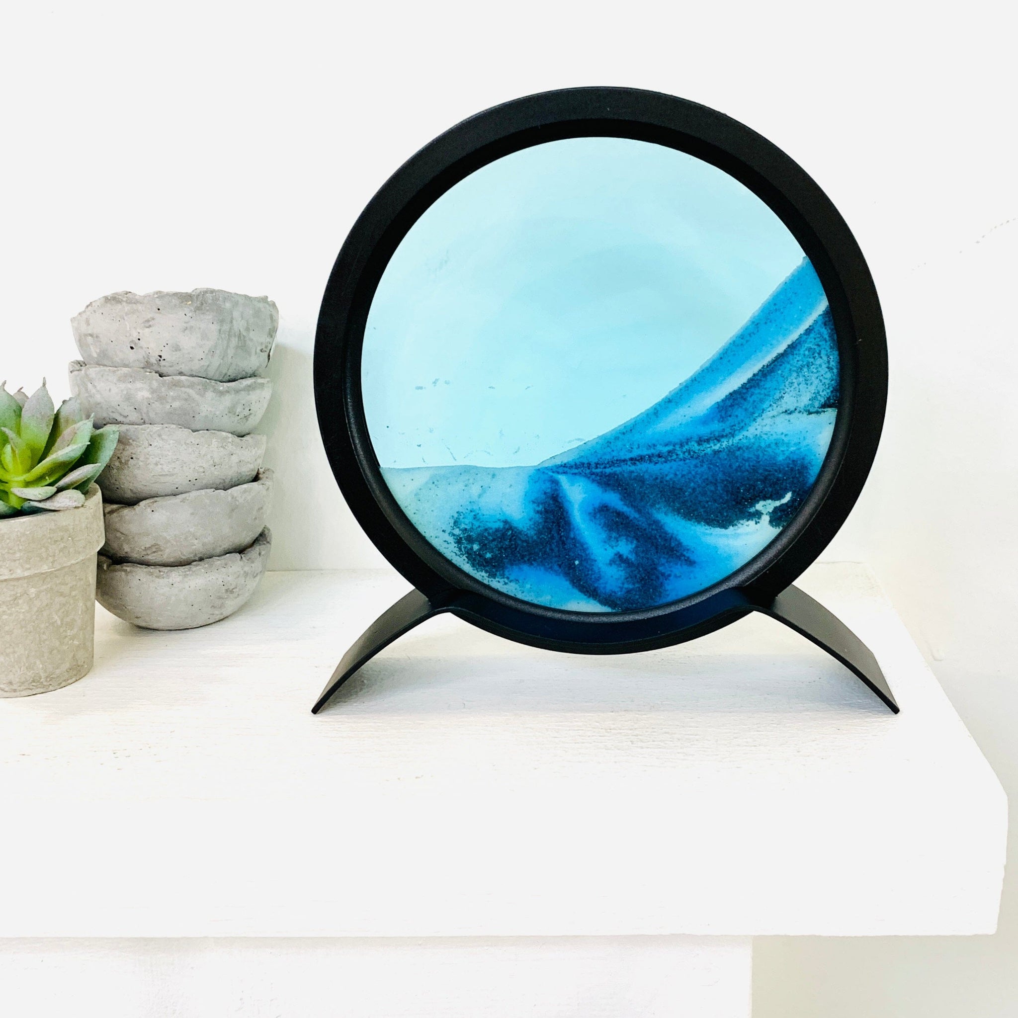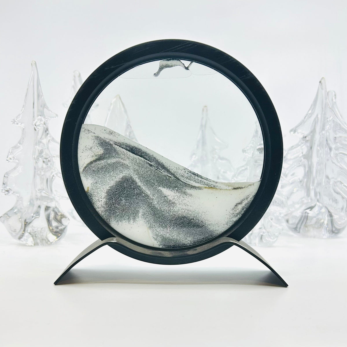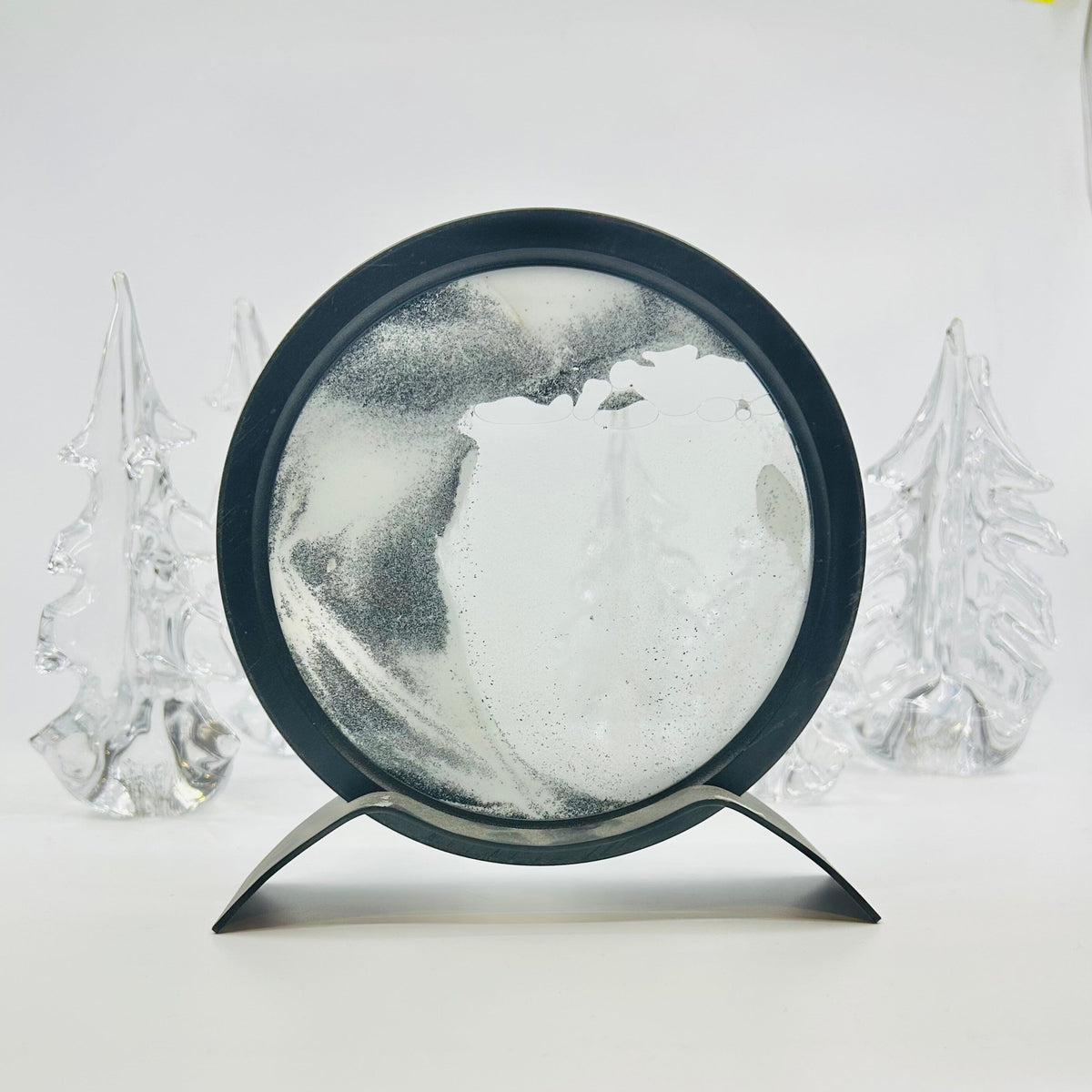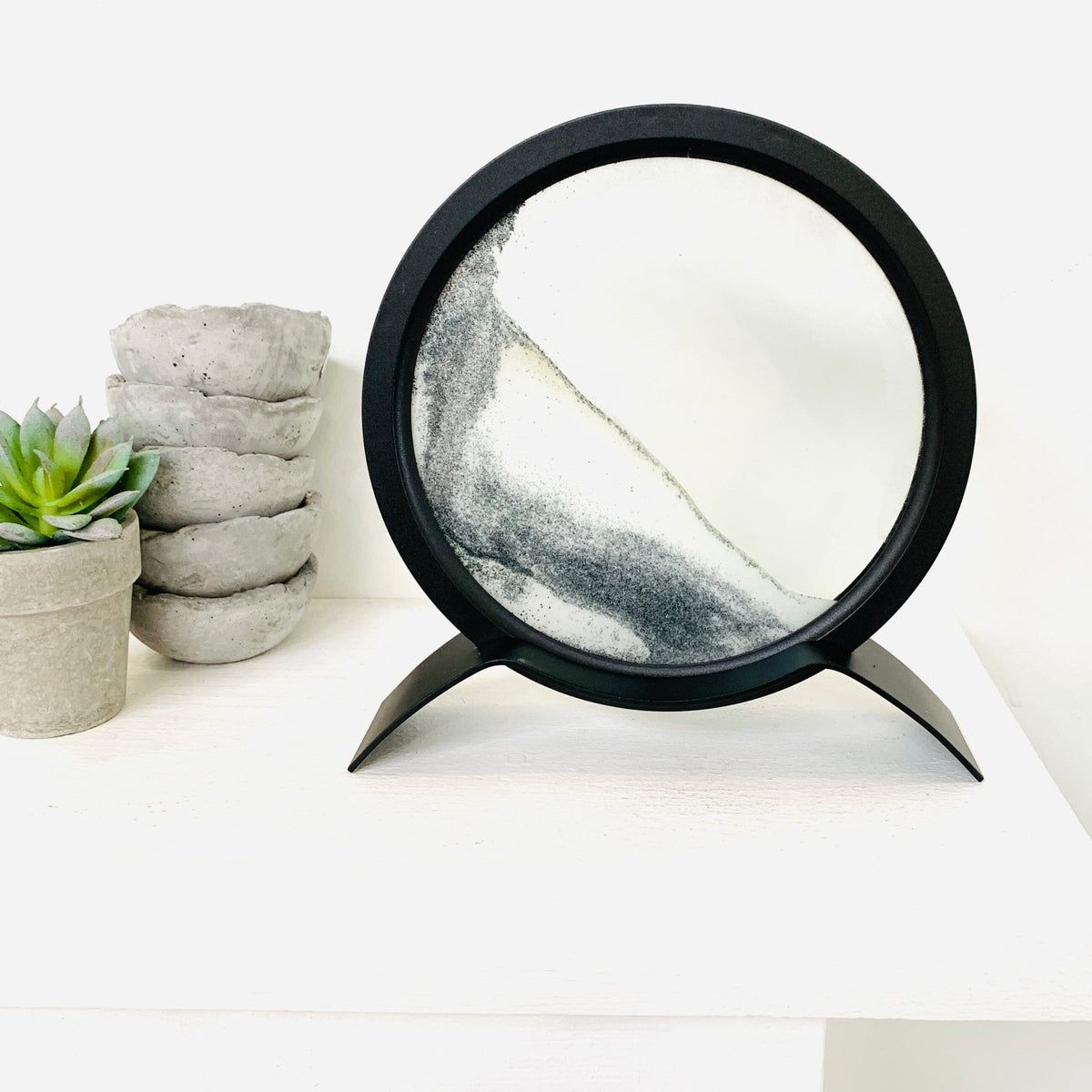 These moving sandscapes will calm the mind and body with its soothing movement. The glass disc can be rotated 360 degrees to create unlimited mesmerizing scenes.