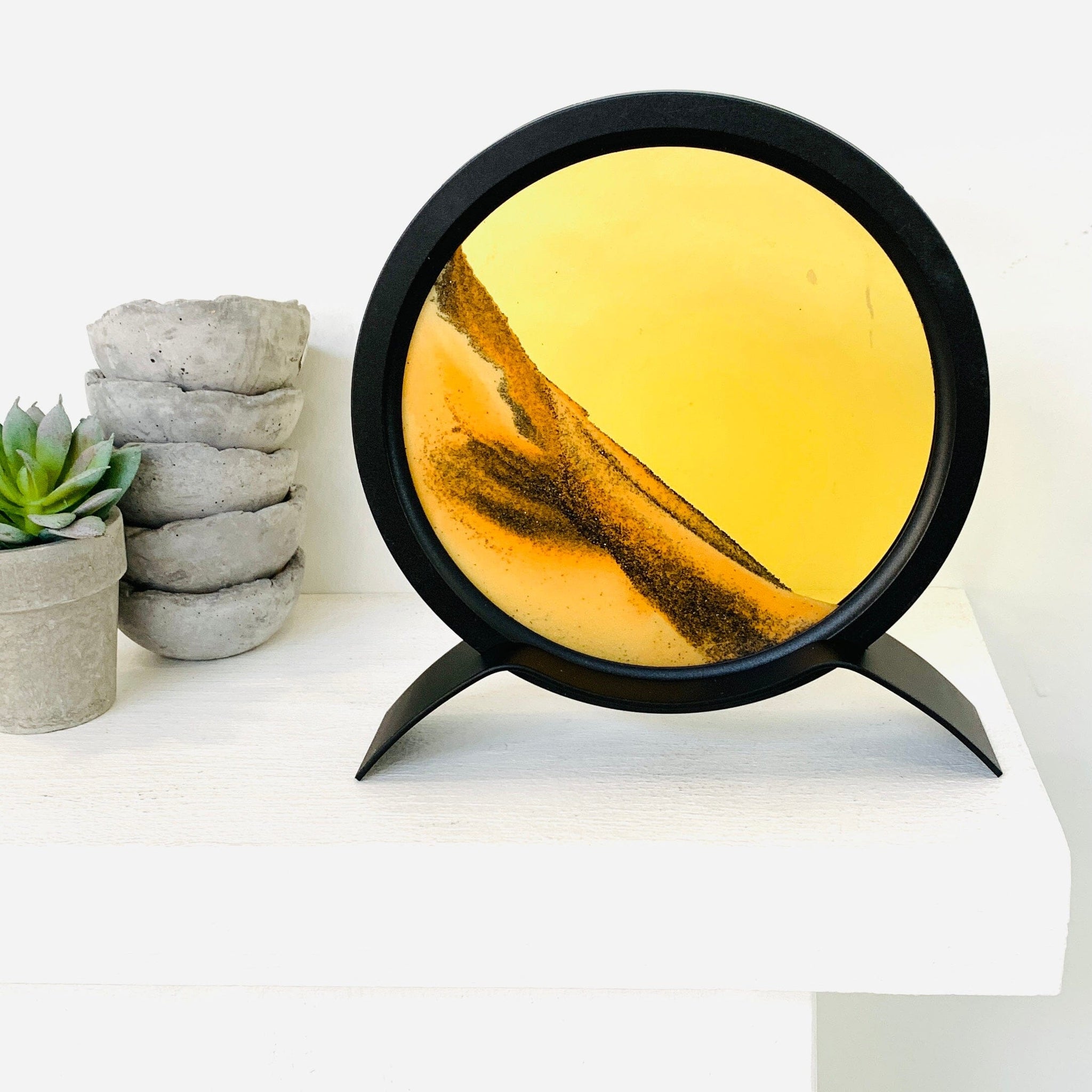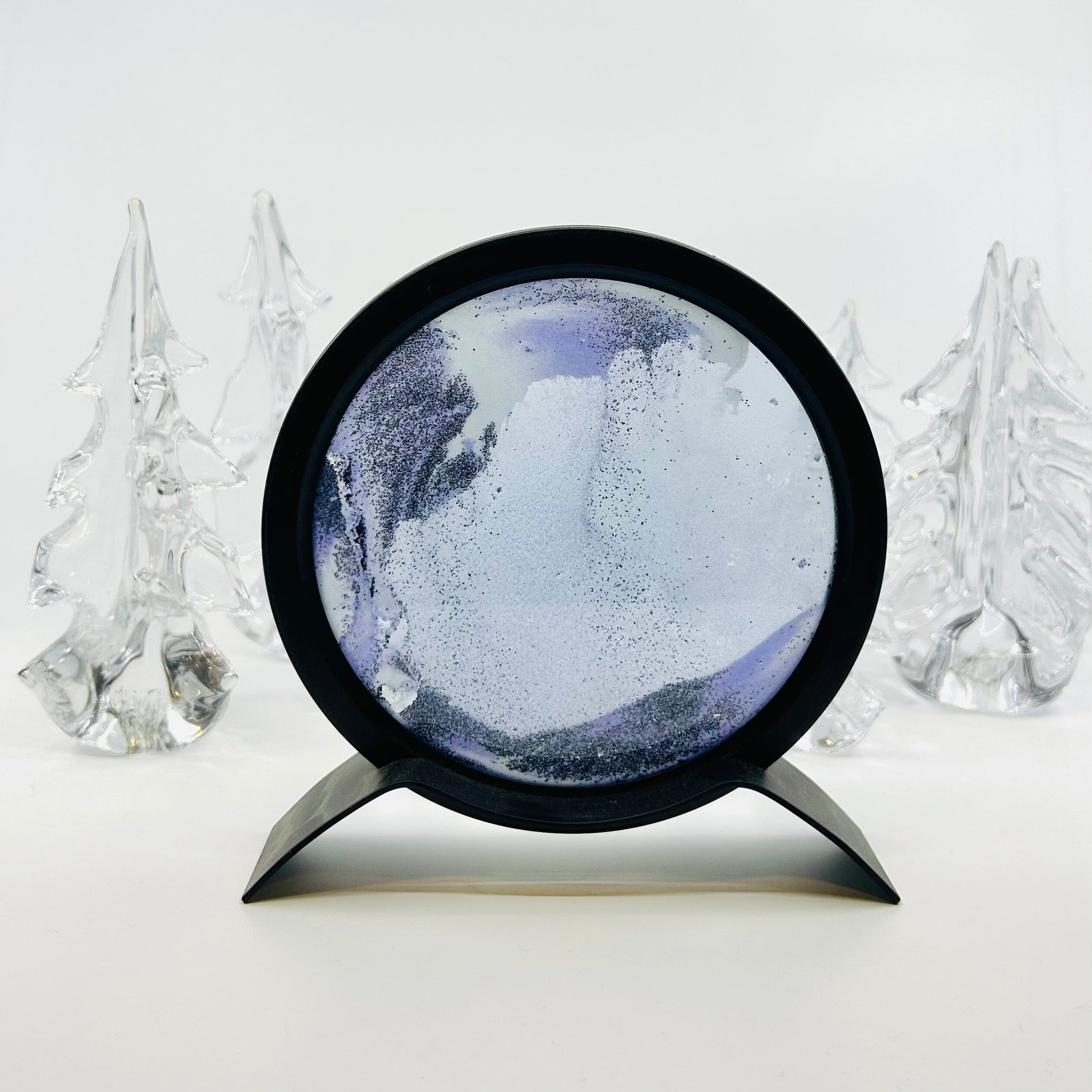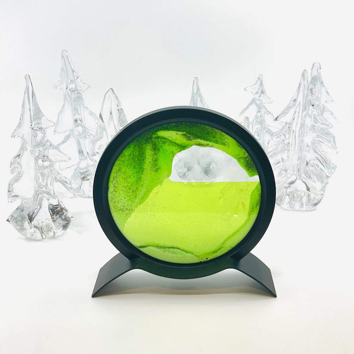 These moving sandscapes will calm the mind and body with its soothing movement. The glass disc can be rotated 360 degrees to create unlimited mesmerizing scenes.