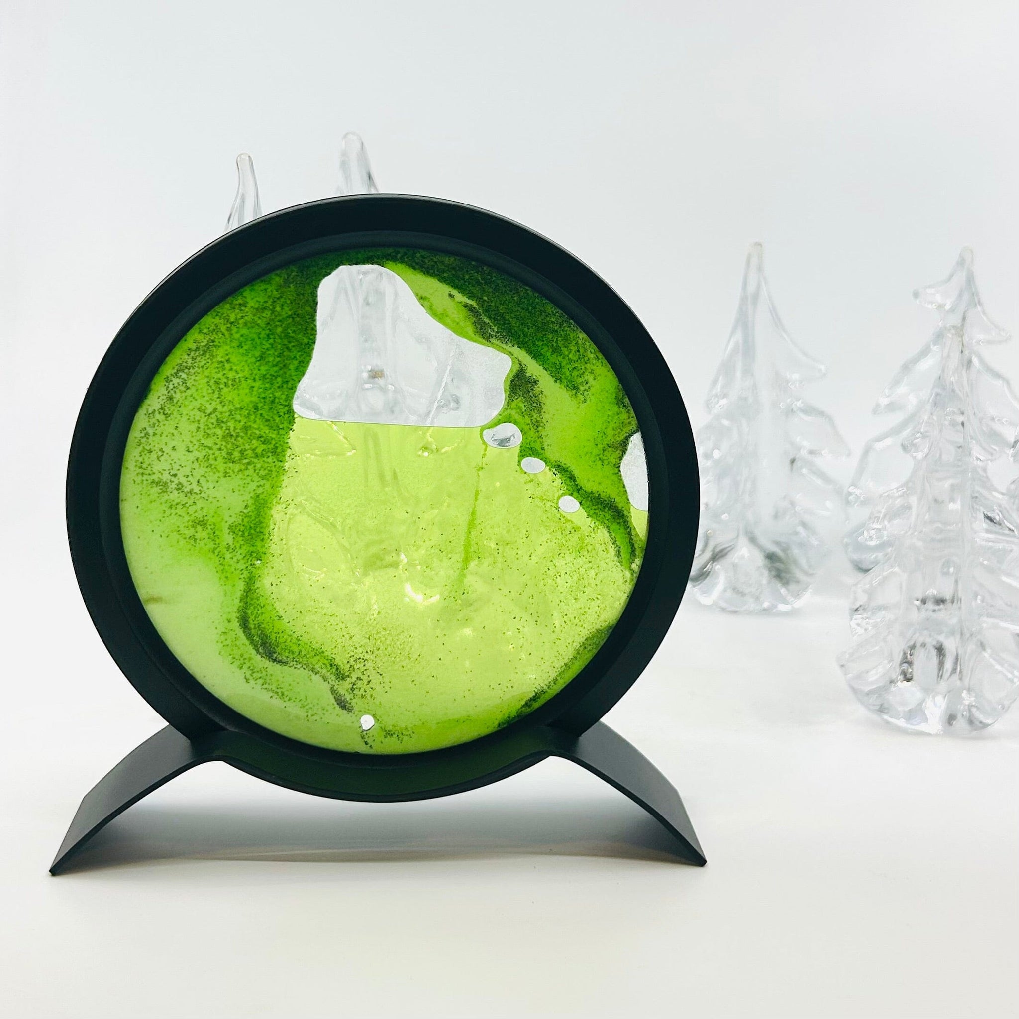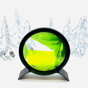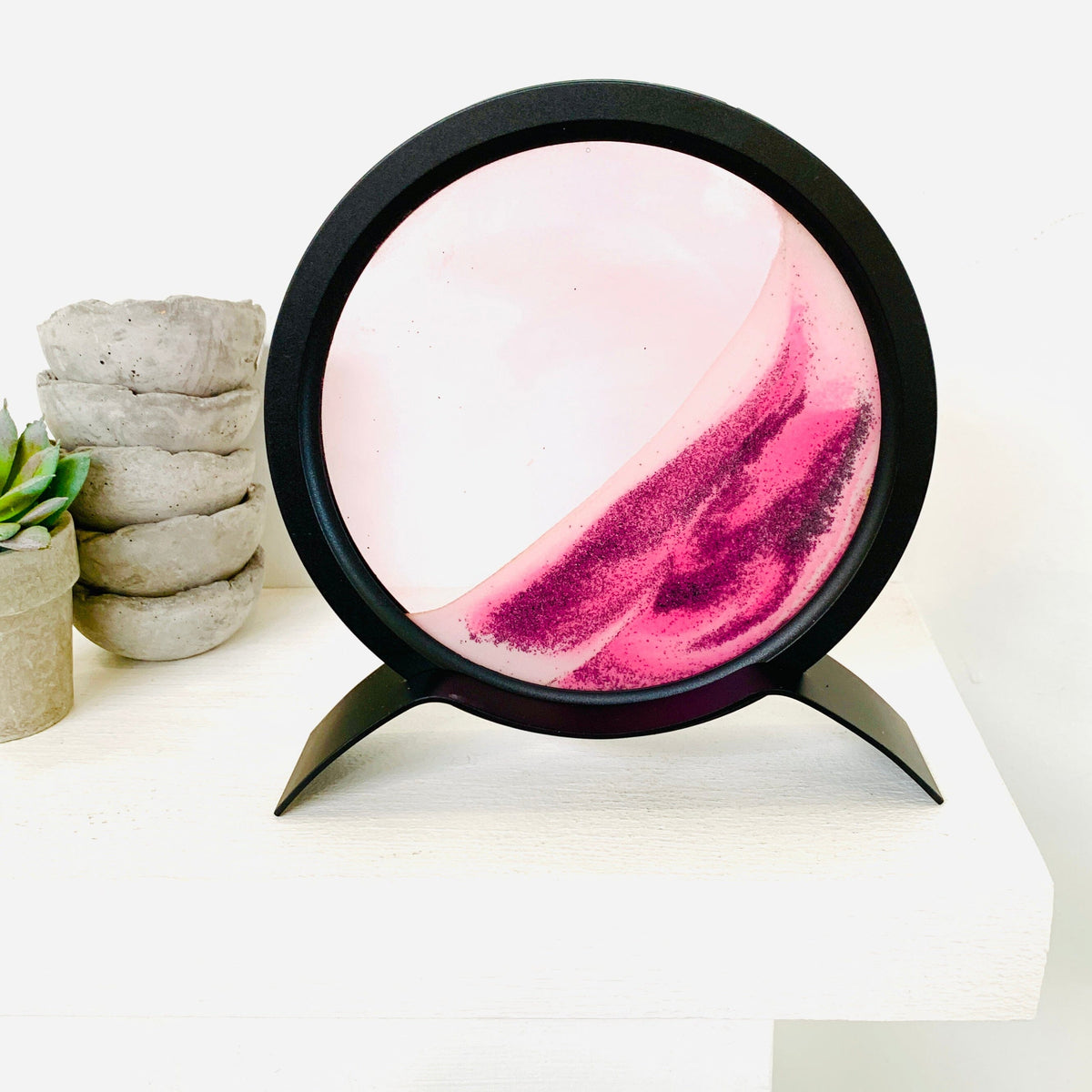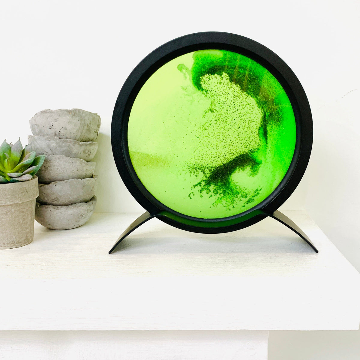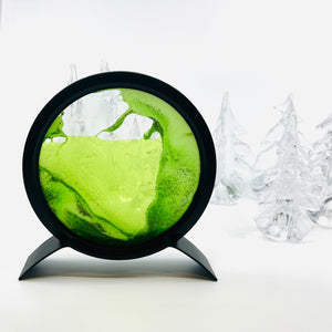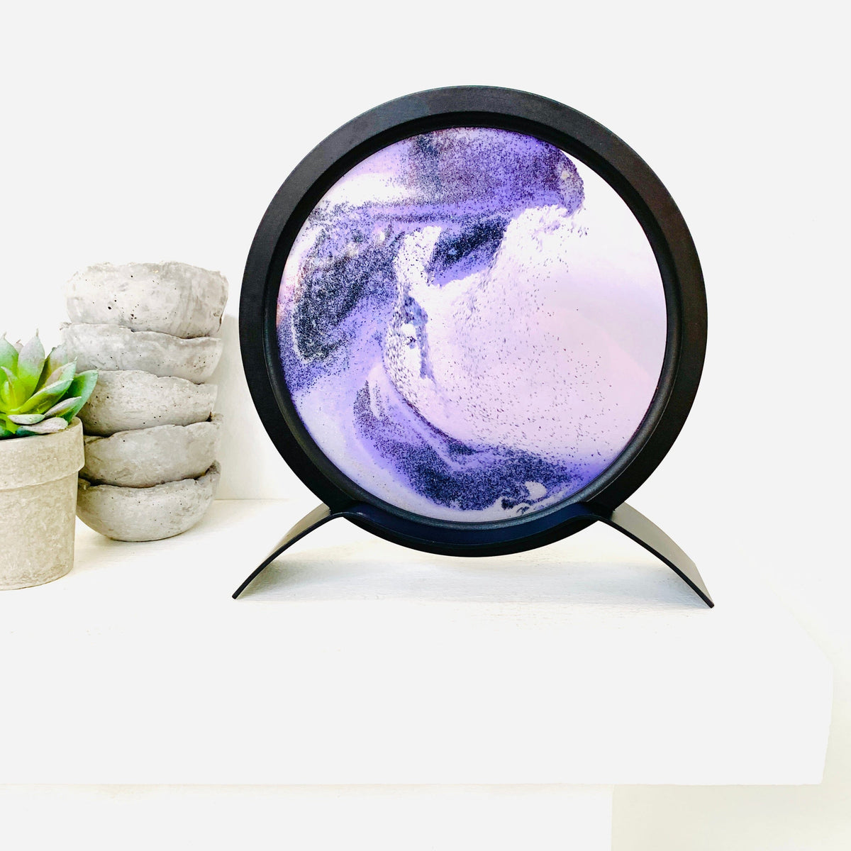 These moving sandscapes will calm the mind and body with its soothing movement. The glass disc can be rotated 360 degrees to create unlimited mesmerizing scenes.