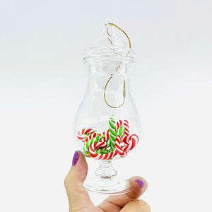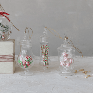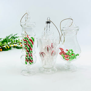 Add a charming touch to your holiday decorations with these glass candy jar ornaments featuring tiny candy pieces inside. Perfect as thoughtful gifts for family and friends, they’re sure to impress your guests this season. Choose from three delightful designs!