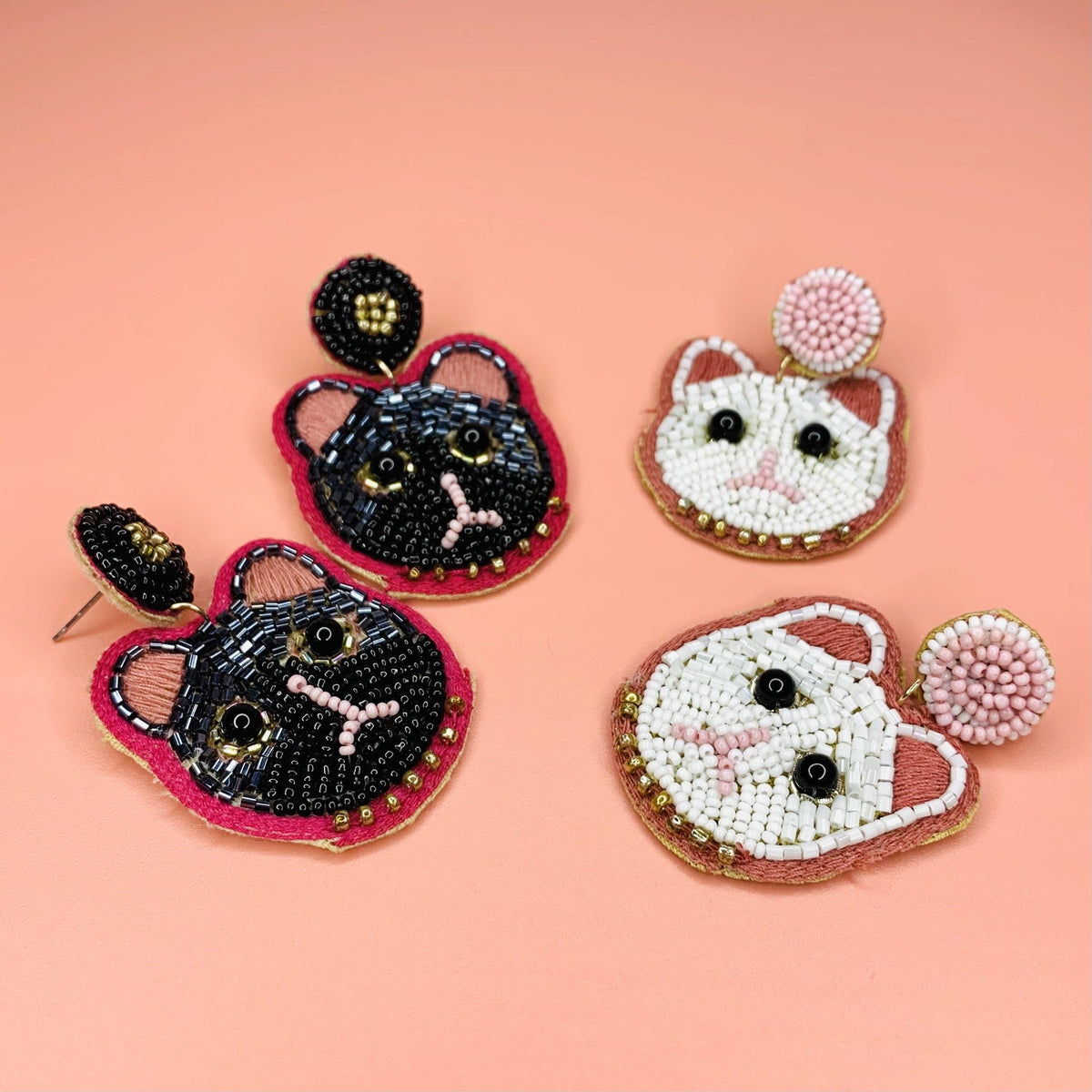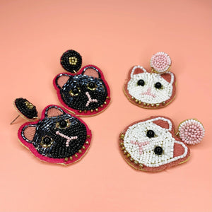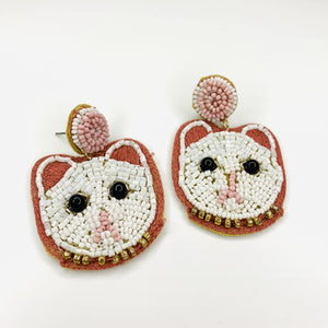Beaded Earring, White Cat
