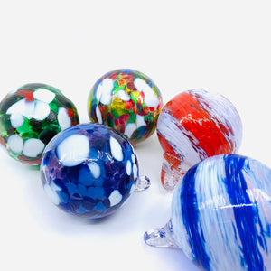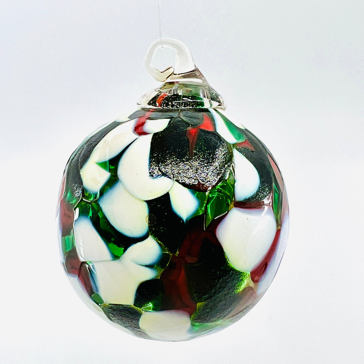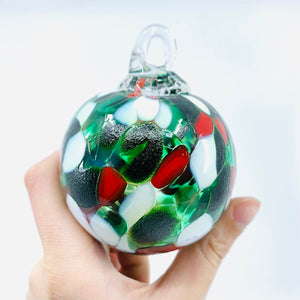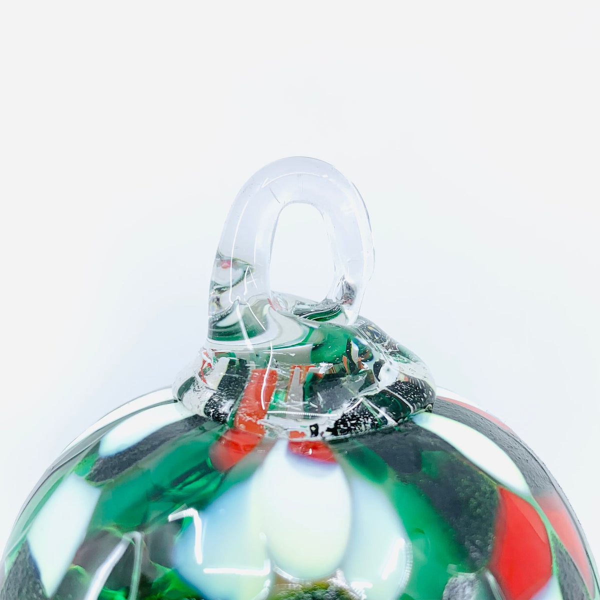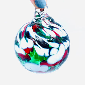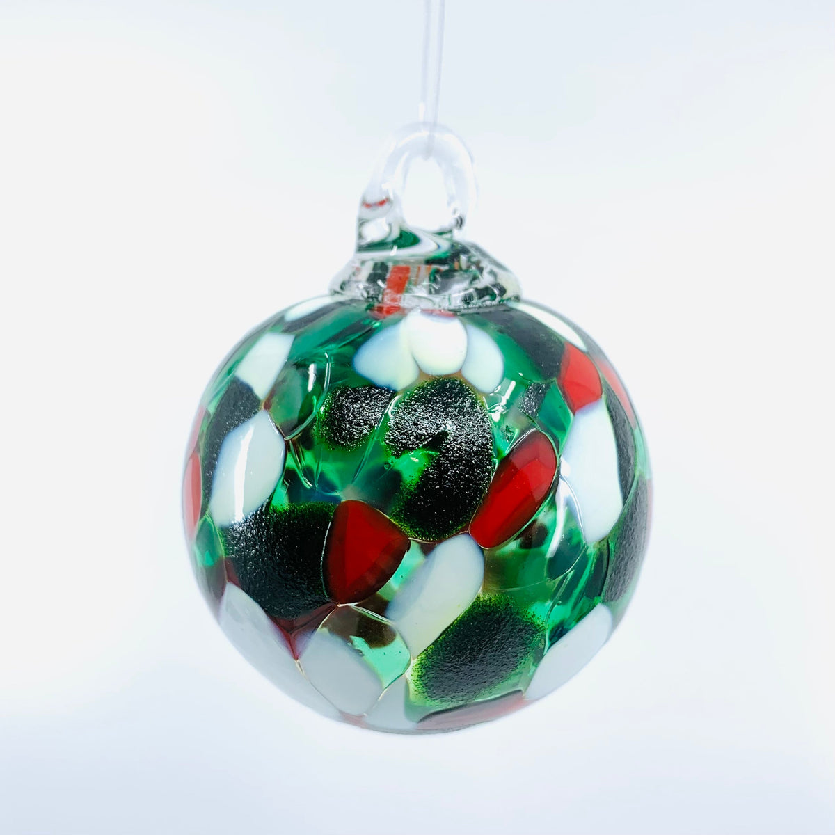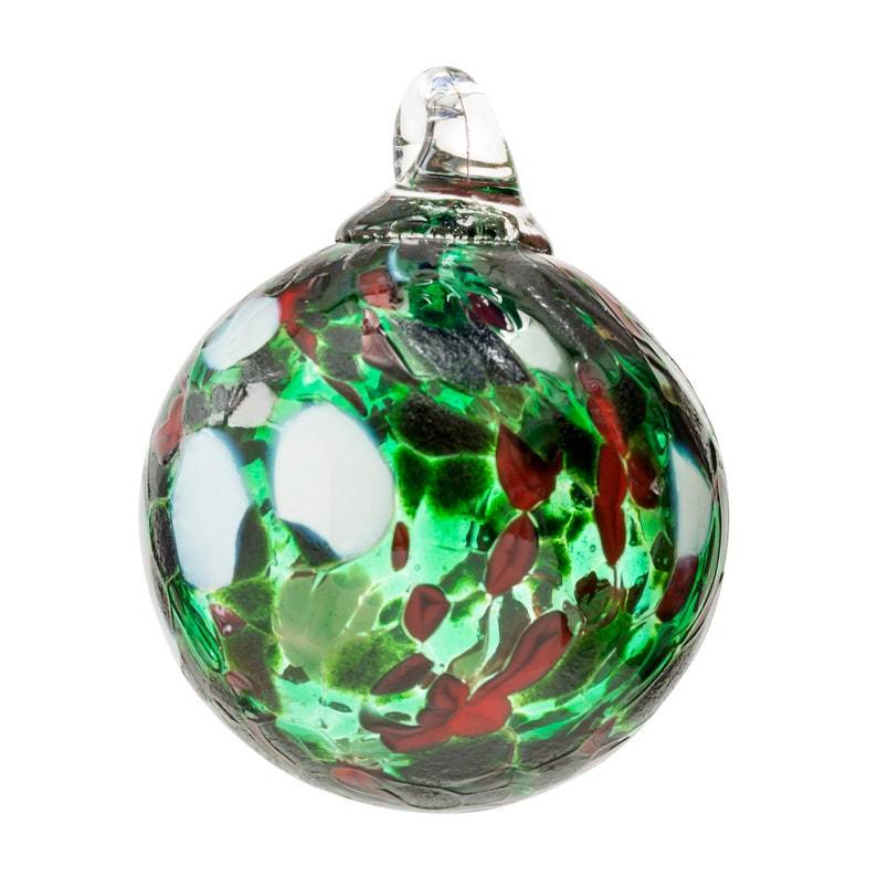 add a touch of holiday charm to your tree with this handmade 3-inch blown glass ornament, crafted with love and care at Luke Adams Glassblowing Studio in Norwood, Massachusetts. The ornament features a beautiful blend of holly green, rich cranberry, and crisp white, evoking the spirit of the season with its vibrant colors and classic design. Perfectly sized for any tree, this ornament offers both delicate beauty and durability. Each piece is individually blown by skilled artisans, ensuring that no two are exactly alike.