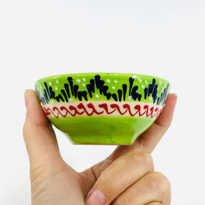 Handmade and hand painted in Turkey, each Bowl is intricately hand painted by Turkish artisans with multiple vibrant colors embedded into the heat-resistant raised surface. All designs are inspired from traditional Turkish artifacts going back several centuries.
