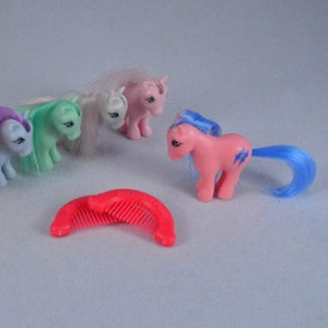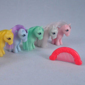 My Little Pony is now available in miniature retro styles! Fans of all ages will want to collect 6 adorable versions of the original. My Little Pony collectibles come with real hair manes and tails to comb and style. Each package includes 2 ponies along with 1 mini comb.