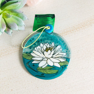 Hand Made fused glass ornaments made using recycled window glass. Each piece is designed in a collaboration between the designers in Ecuador and the USA. Every suncatcher boasts a vegetable ivory bead obtained from the Ecuadorian Tropical Forest. 100% Eco-Friendly. Sustainablity and Fair Trade.