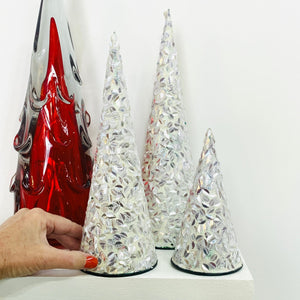 Light up your holiday display with this enchanting trio of beaded glass trees. Each hand-crafted piece sparkles with festive personality, blending whimsy and elegance in perfect harmony. Arrange them together for maximum impact or scatter throughout your home—these charming trees bring warmth, shimmer, and seasonal magic to any corner they grace.