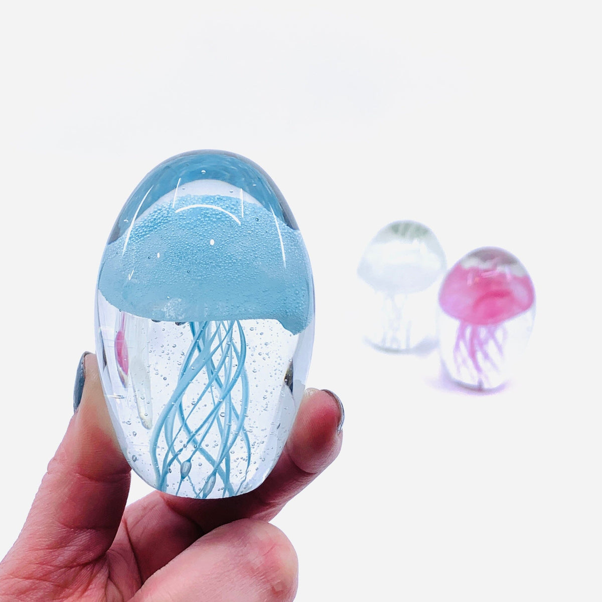 Pebble Glow in the Dark Jellyfish Paperweight 8, Blue