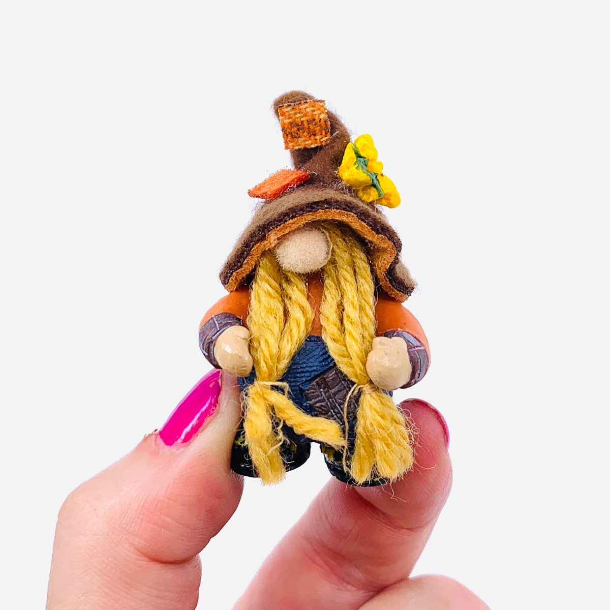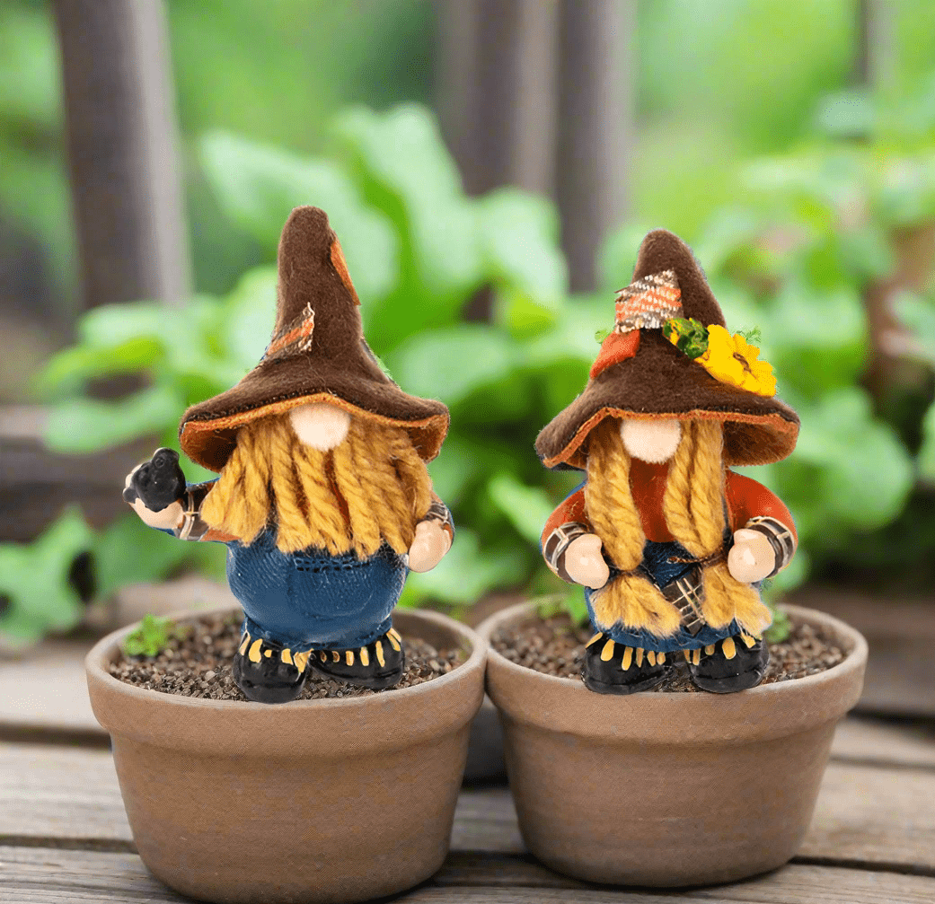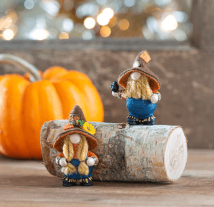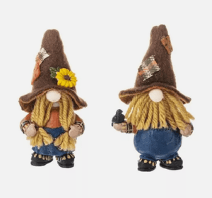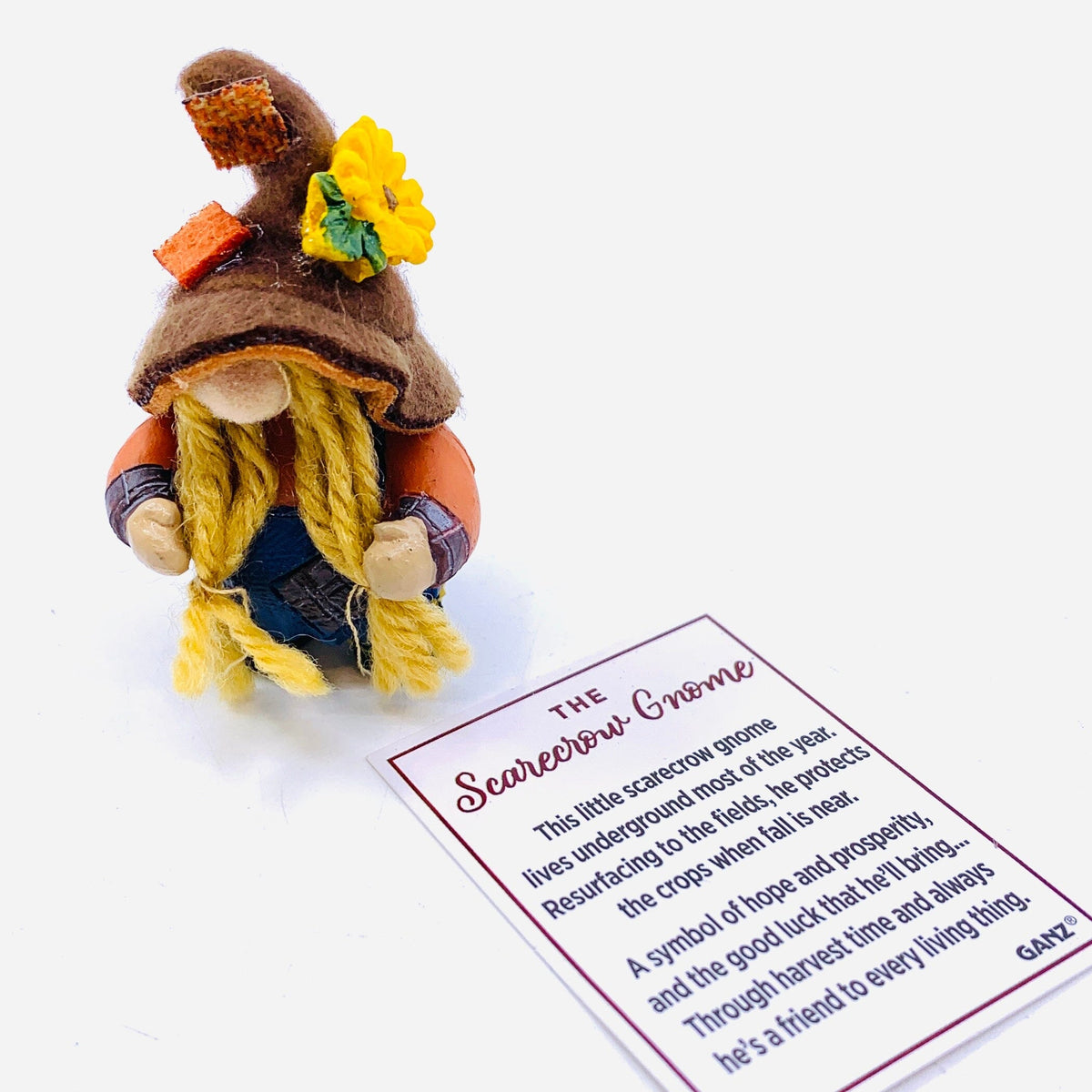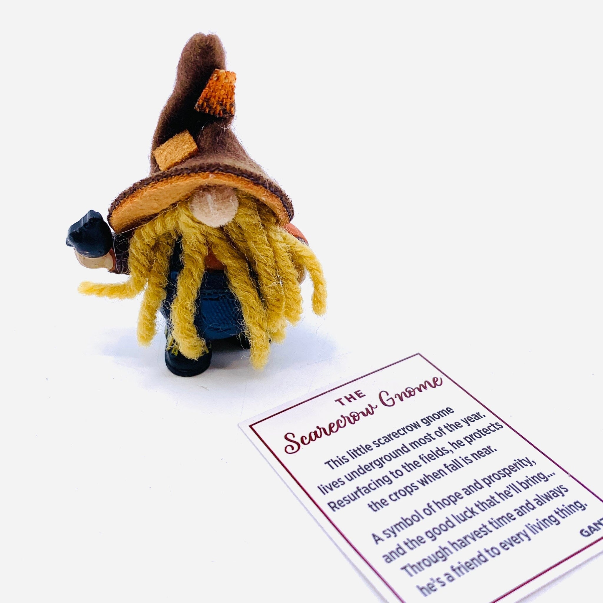 This little scarecrow gnome lives underground most of the year. Resurfacing to the fields, he protects the crops when fall is near. A symbol of hope and prosperity, and the good luck that he'll bring... Through harvest time and always he's a friend to every living thing.