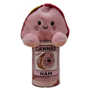 • Ham plush sealed in a can. Peel back the pop top lid to reveal your amazingly soft, new best friend!