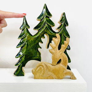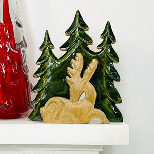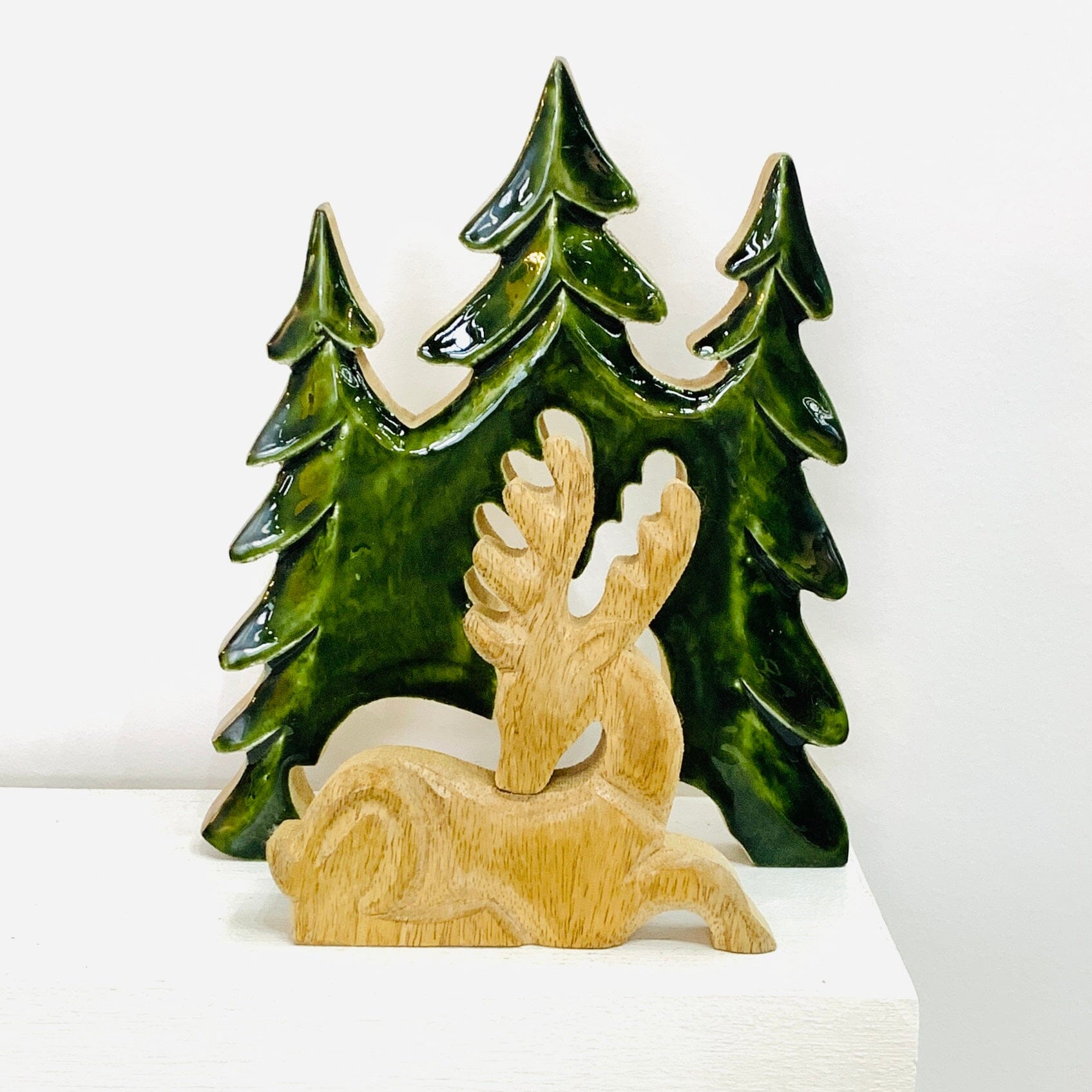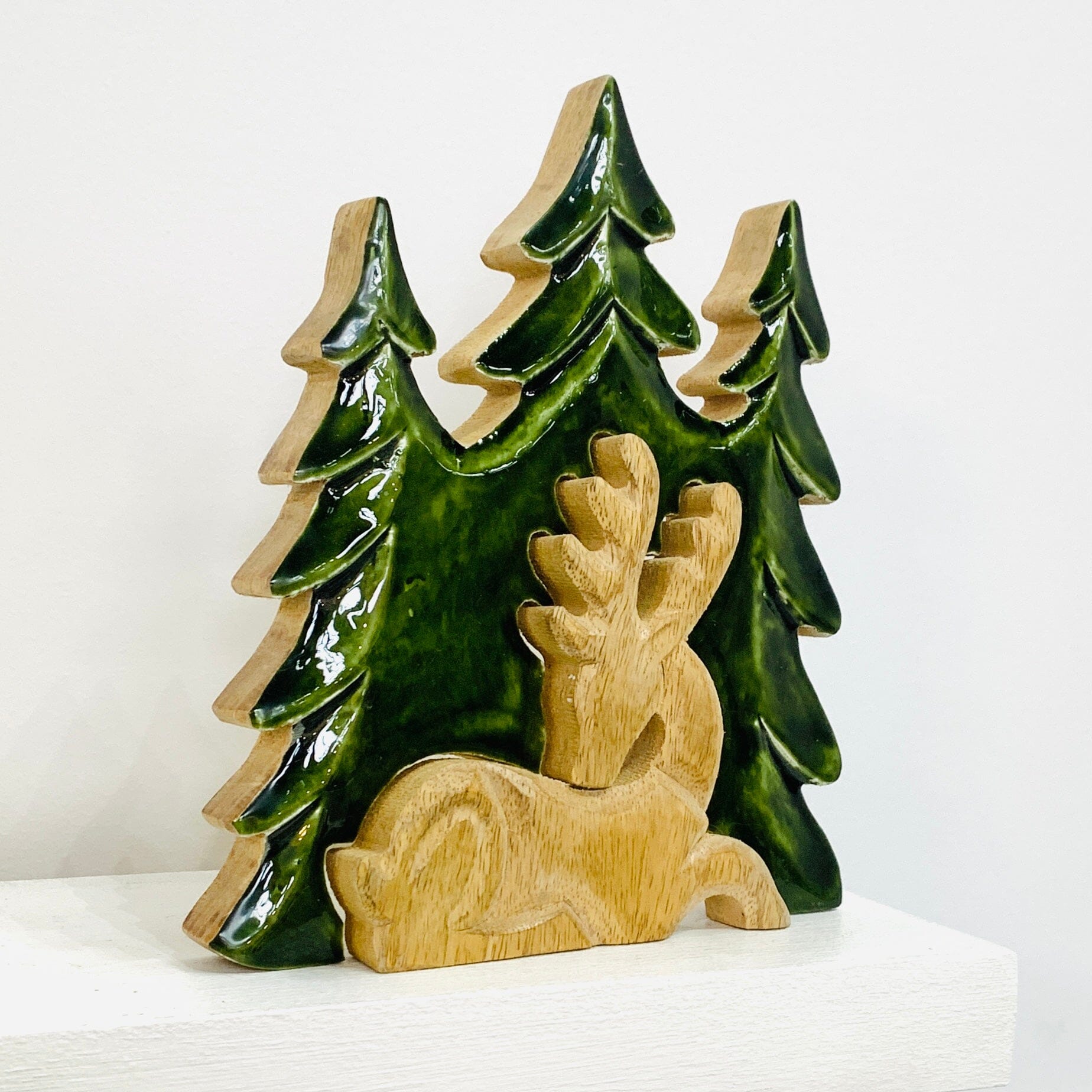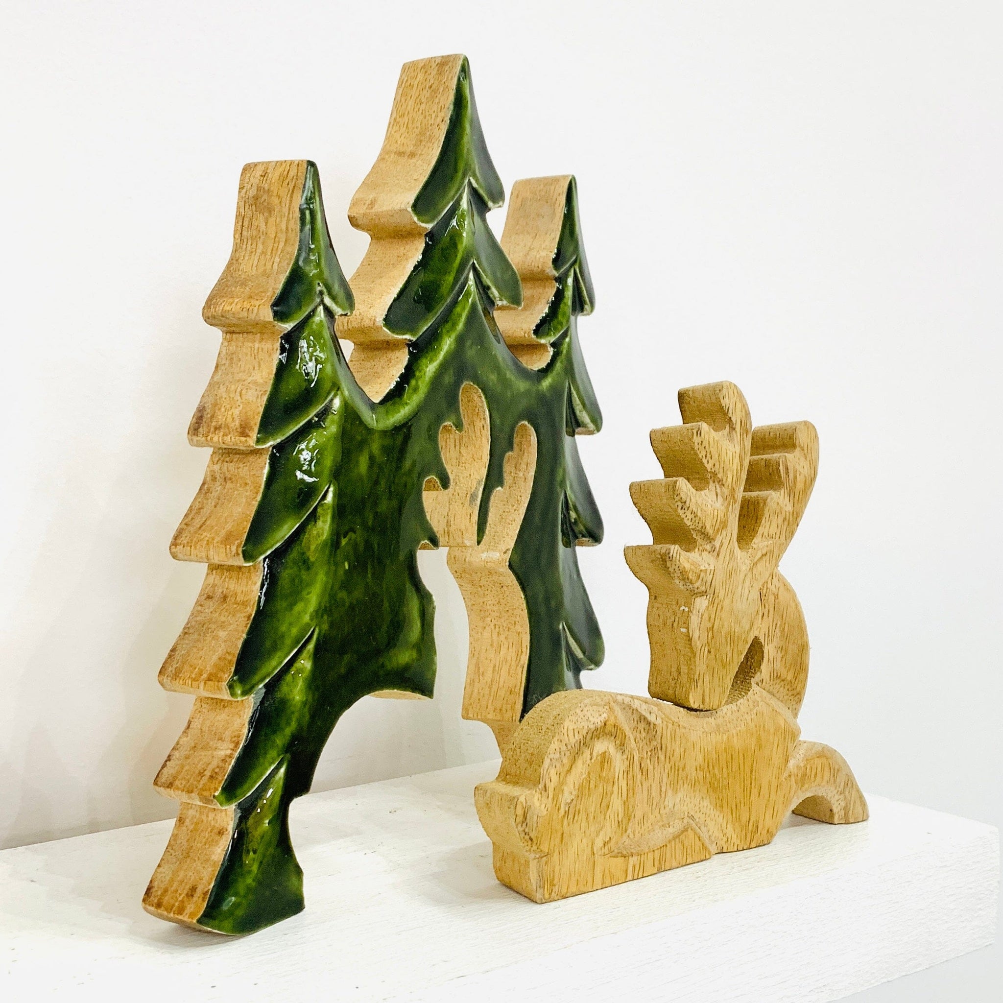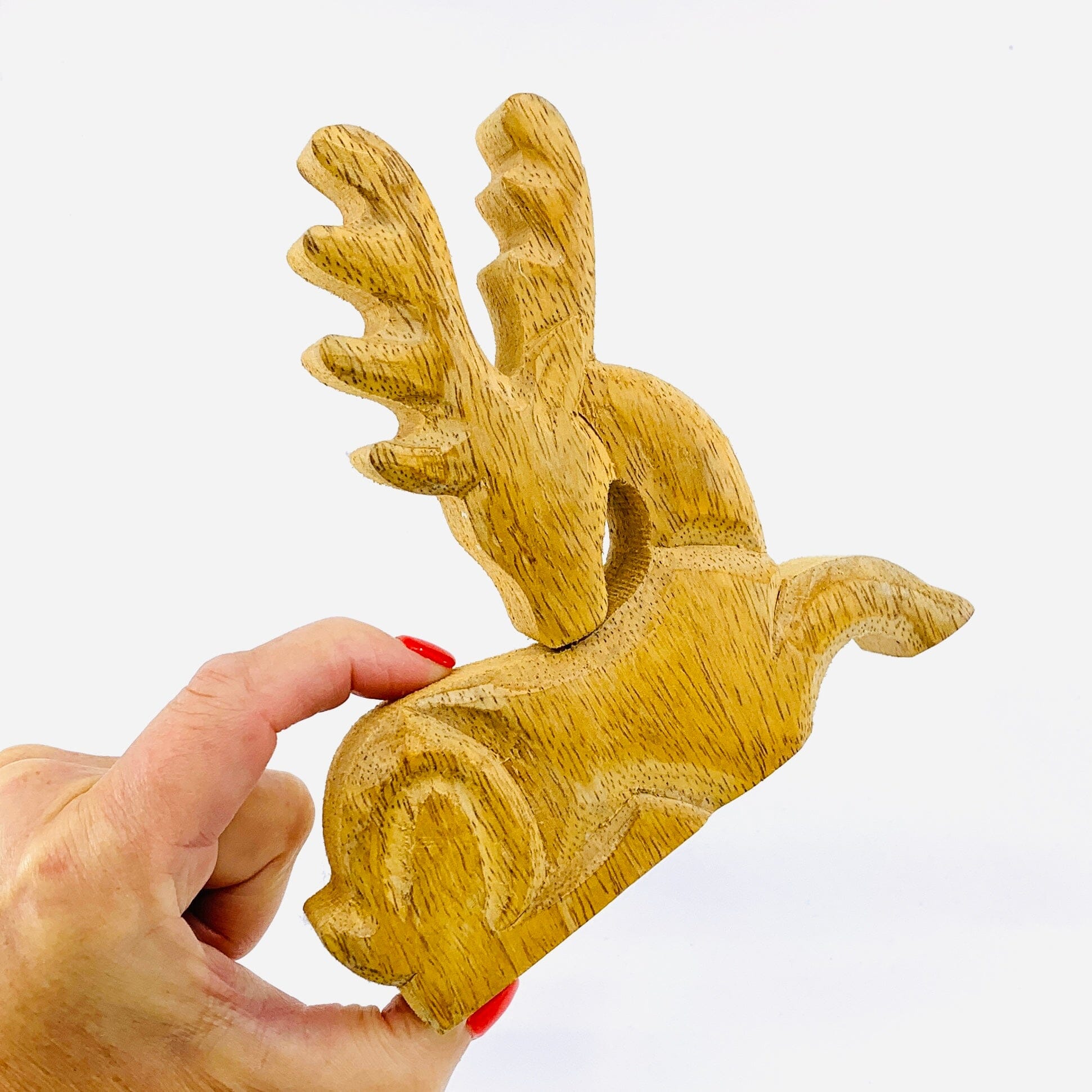 Welcome Santa's favorite friend into your home with this enchanting mango wood reindeer. Its striking 3D carved design leaps off the surface with playful dimension, while hand-painted enamel in rich colors adds festive flair. This rustic-yet-elegant piece brings woodland magic and seasonal warmth to any room, making it an irresistible accent for holiday lovers everywhere.