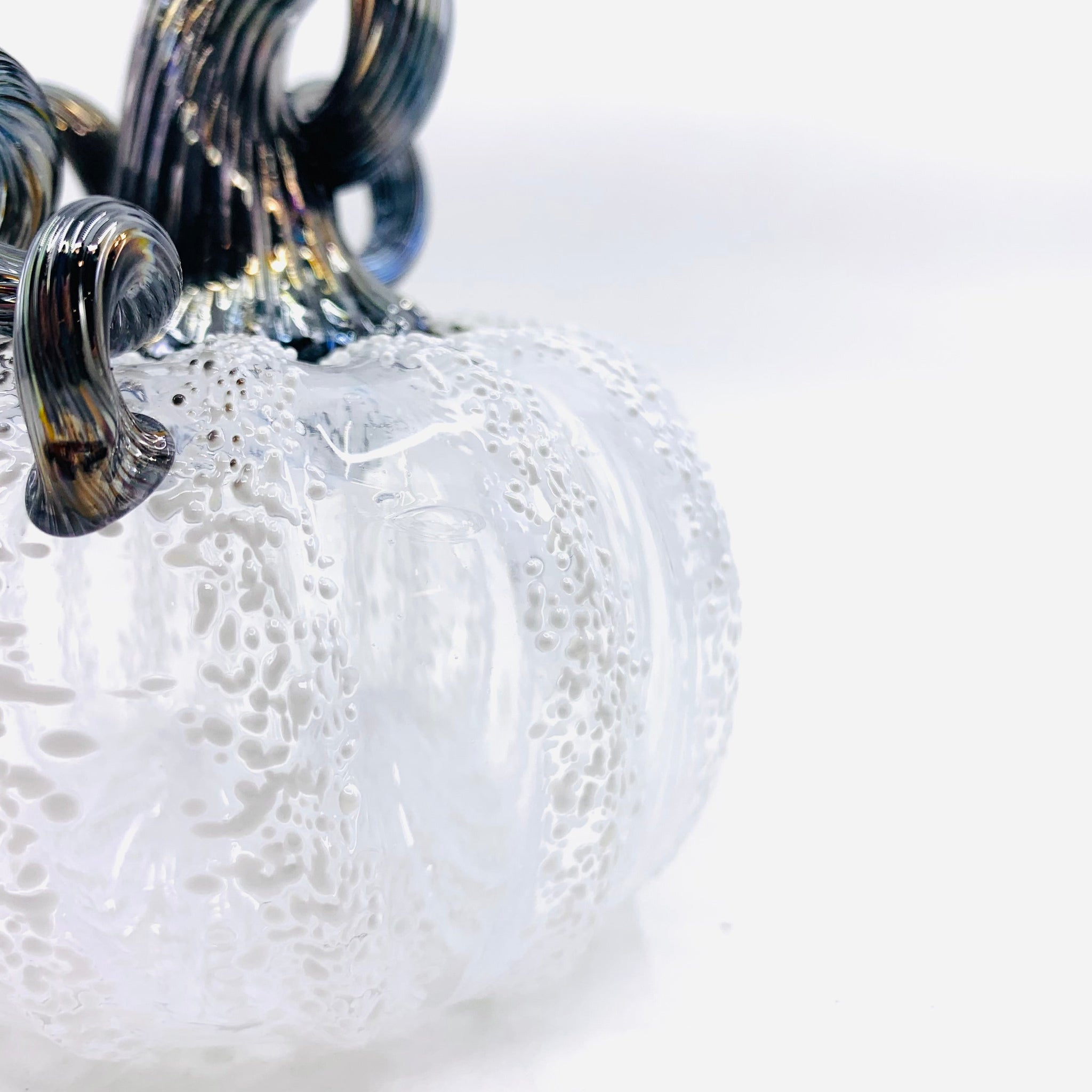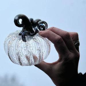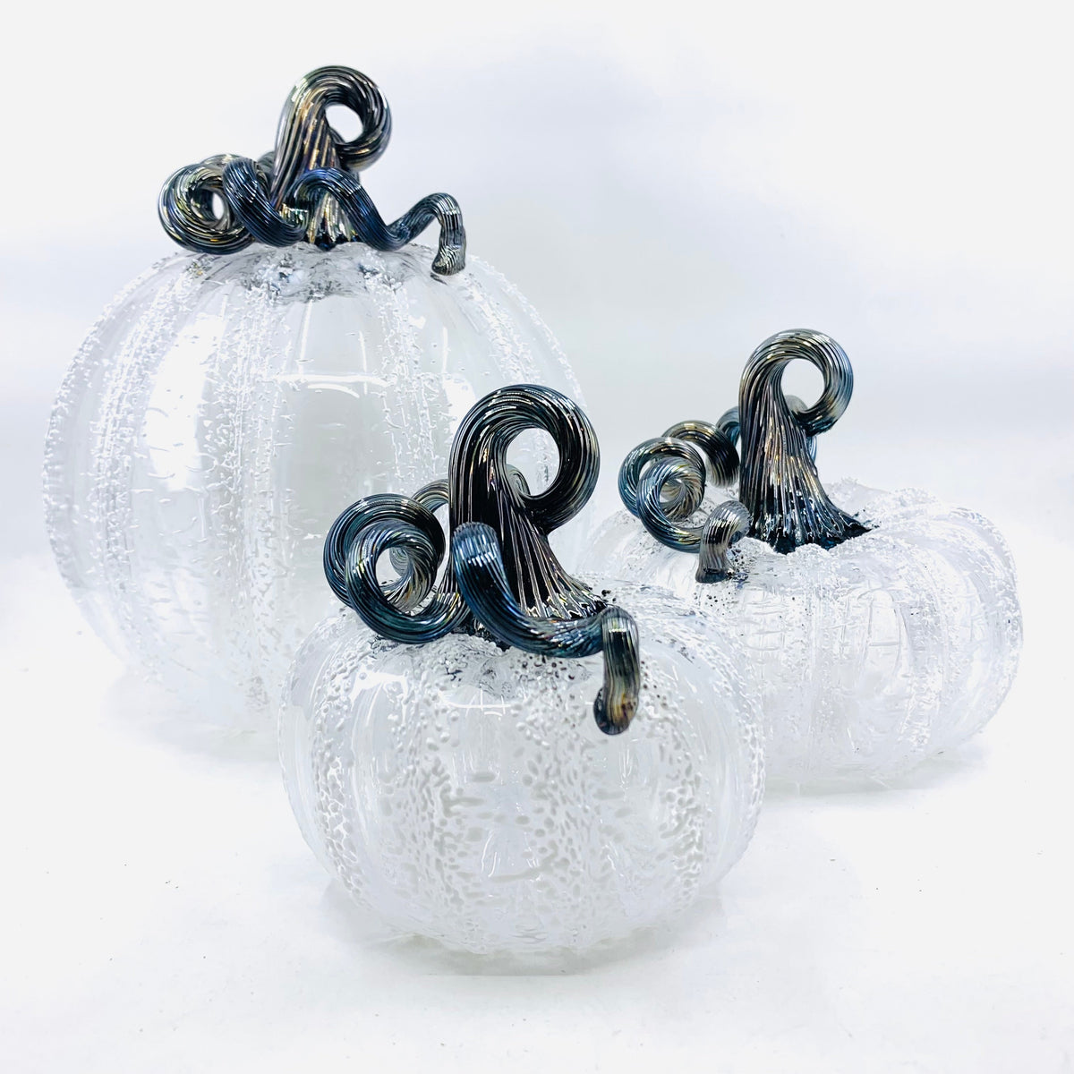 These magical glass pumpkins make a statement all year round with their rich colors, fine details, and playfully coiled stems. Handblown at the Luke Adams Glassblowing Studio in Norwood, MA studio. Pure magic.