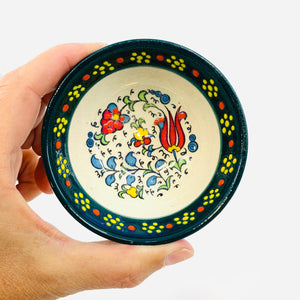 Handmade and hand painted in Turkey, each Bowl is intricately hand painted by Turkish artisans with multiple vibrant colors embedded into the heat-resistant raised surface. All designs are inspired from traditional Turkish artifacts going back several centuries.