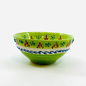 Handmade and hand painted in Turkey, each Bowl is intricately hand painted by Turkish artisans with multiple vibrant colors embedded into the heat-resistant raised surface. All designs are inspired from traditional Turkish artifacts going back several centuries.