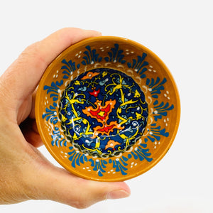 Handmade and hand painted in Turkey, each Bowl is intricately hand painted by Turkish artisans with multiple vibrant colors embedded into the heat-resistant raised surface. All designs are inspired from traditional Turkish artifacts going back several centuries.