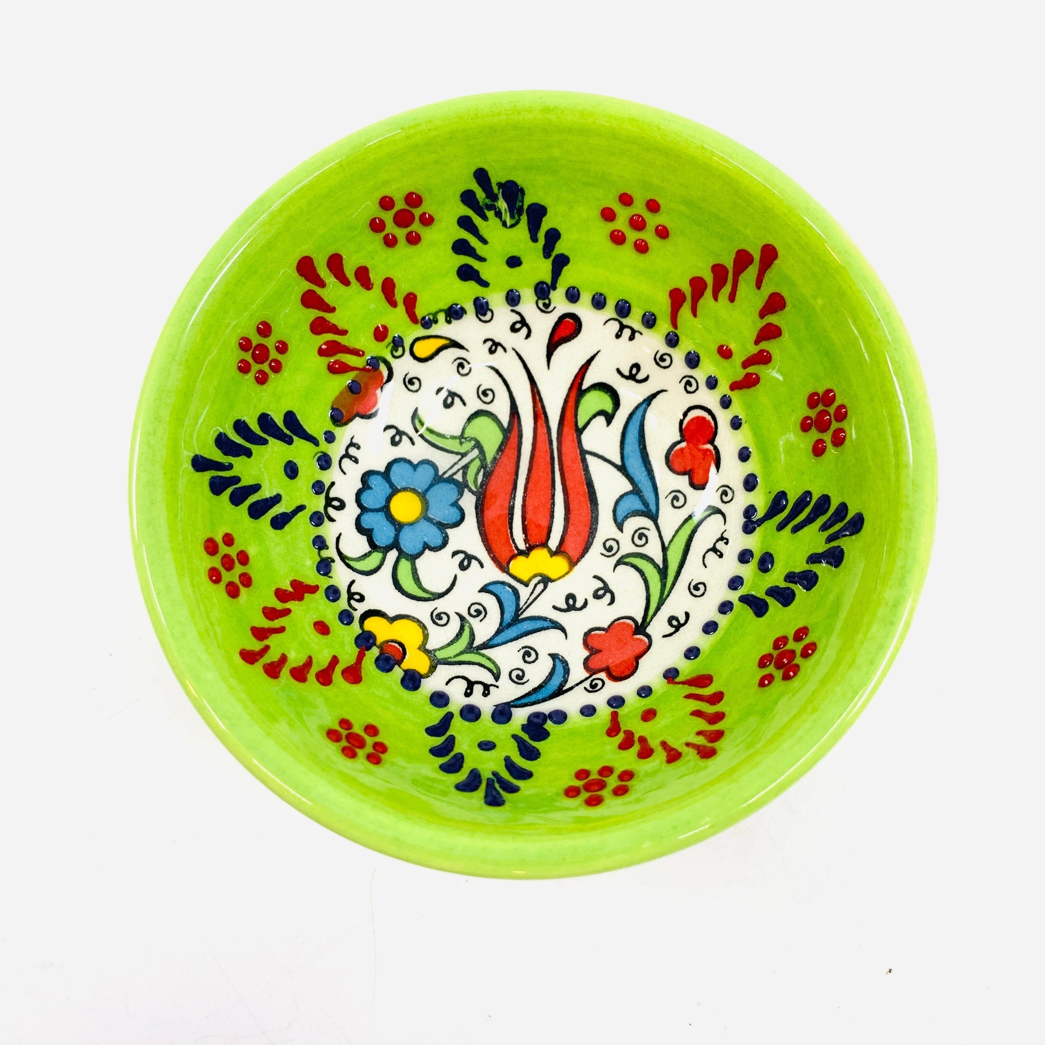 Handmade and hand painted in Turkey, each Bowl is intricately hand painted by Turkish artisans with multiple vibrant colors embedded into the heat-resistant raised surface. All designs are inspired from traditional Turkish artifacts going back several centuries.
