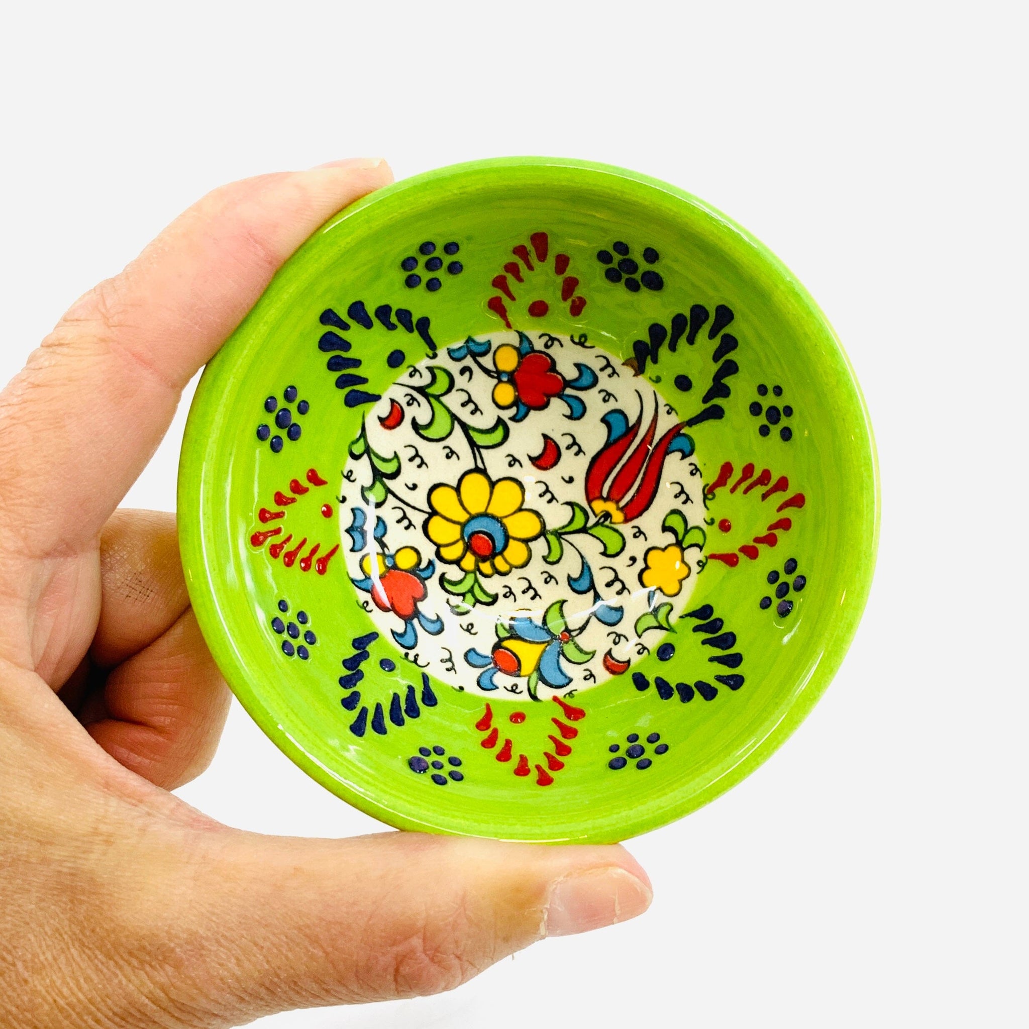 Handmade and hand painted in Turkey, each Bowl is intricately hand painted by Turkish artisans with multiple vibrant colors embedded into the heat-resistant raised surface. All designs are inspired from traditional Turkish artifacts going back several centuries.
