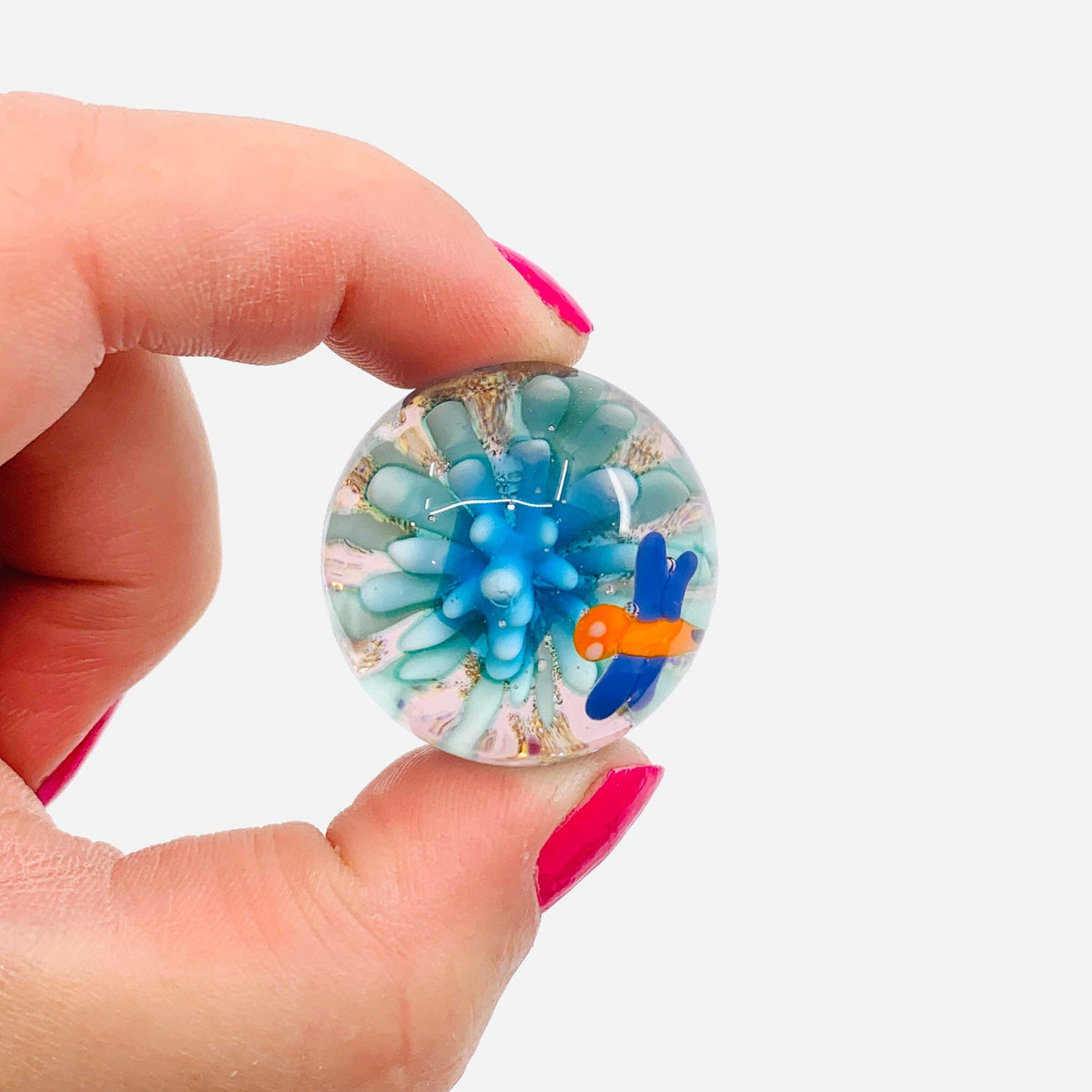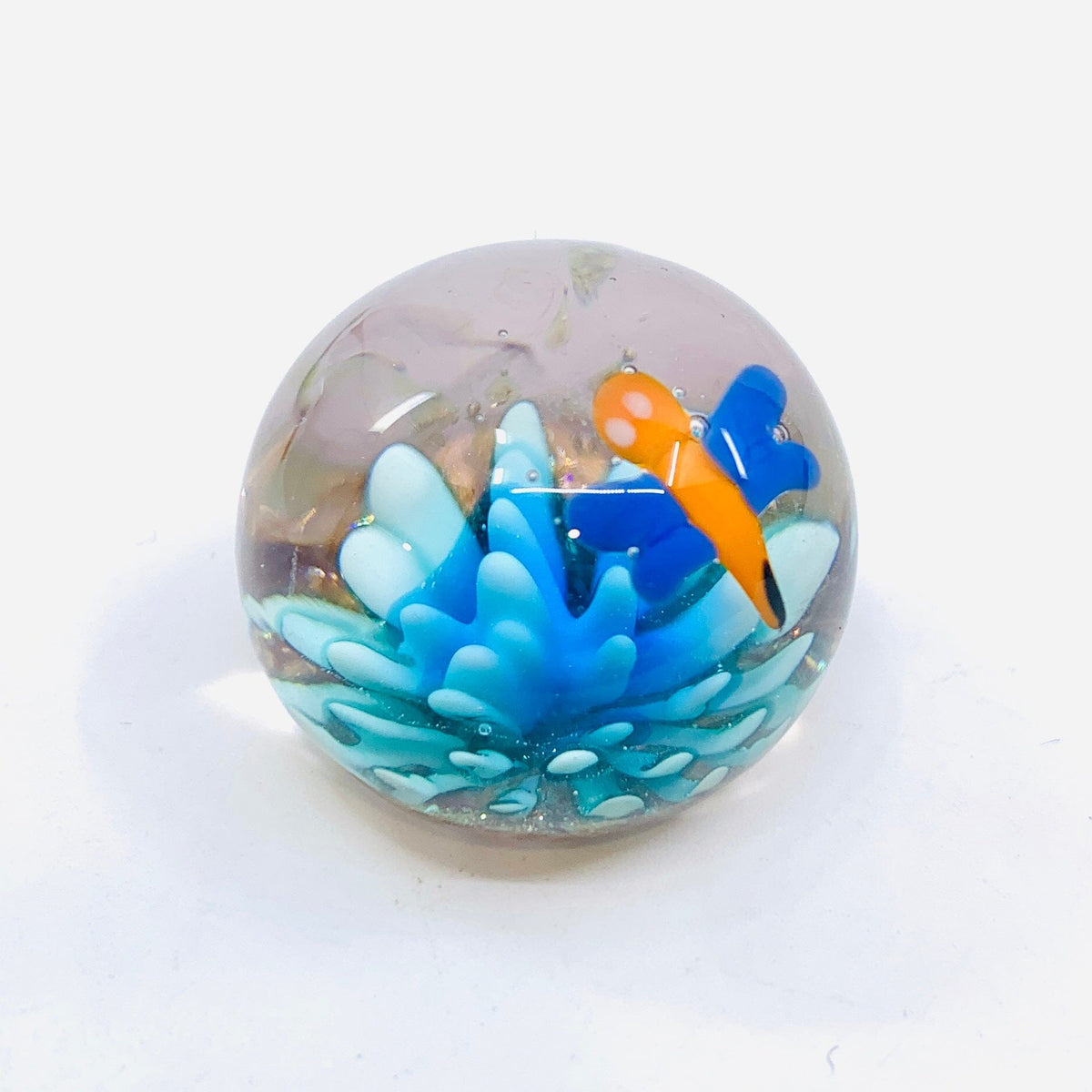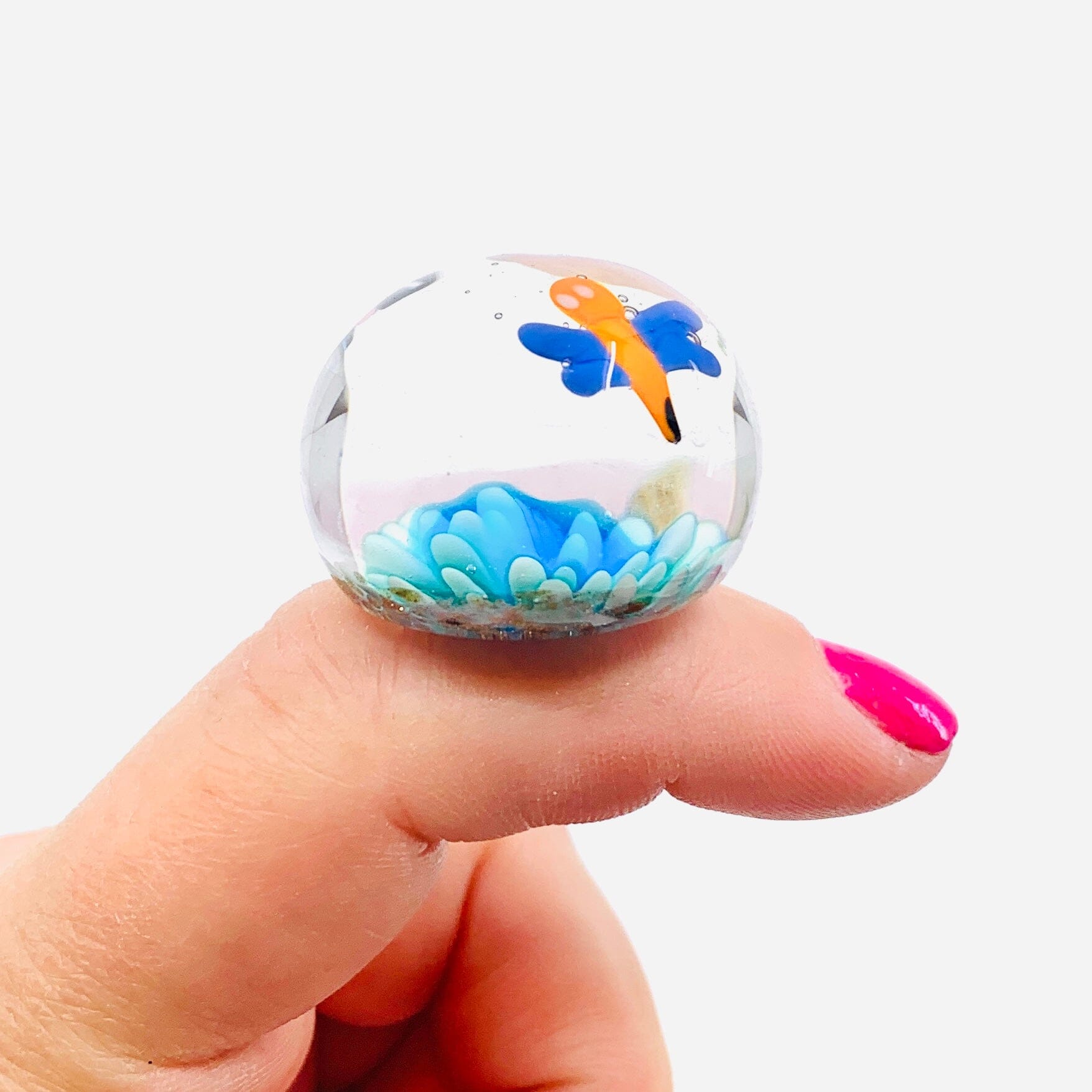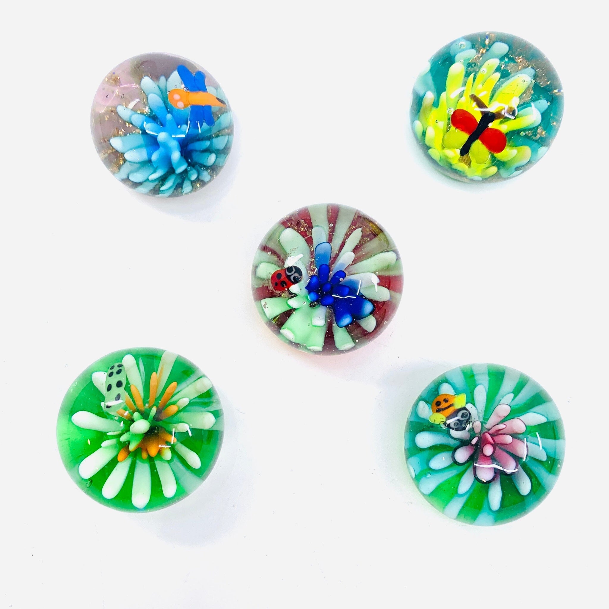 These tiny glass flower paperweights have a teeny tiny resin forever plant happily inside. Perfect for a desk or a dollhouse.