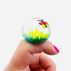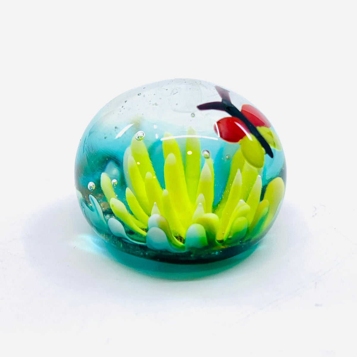 These tiny glass flower paperweights have a teeny tiny resin forever plant happily inside. Perfect for a desk or a dollhouse.