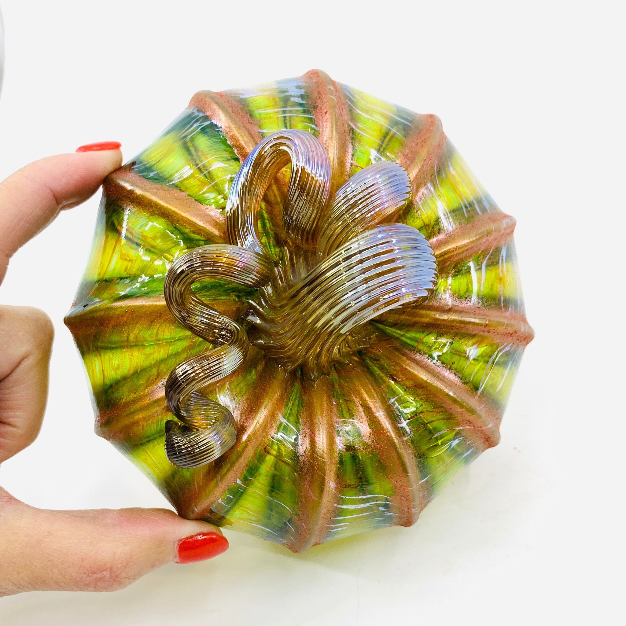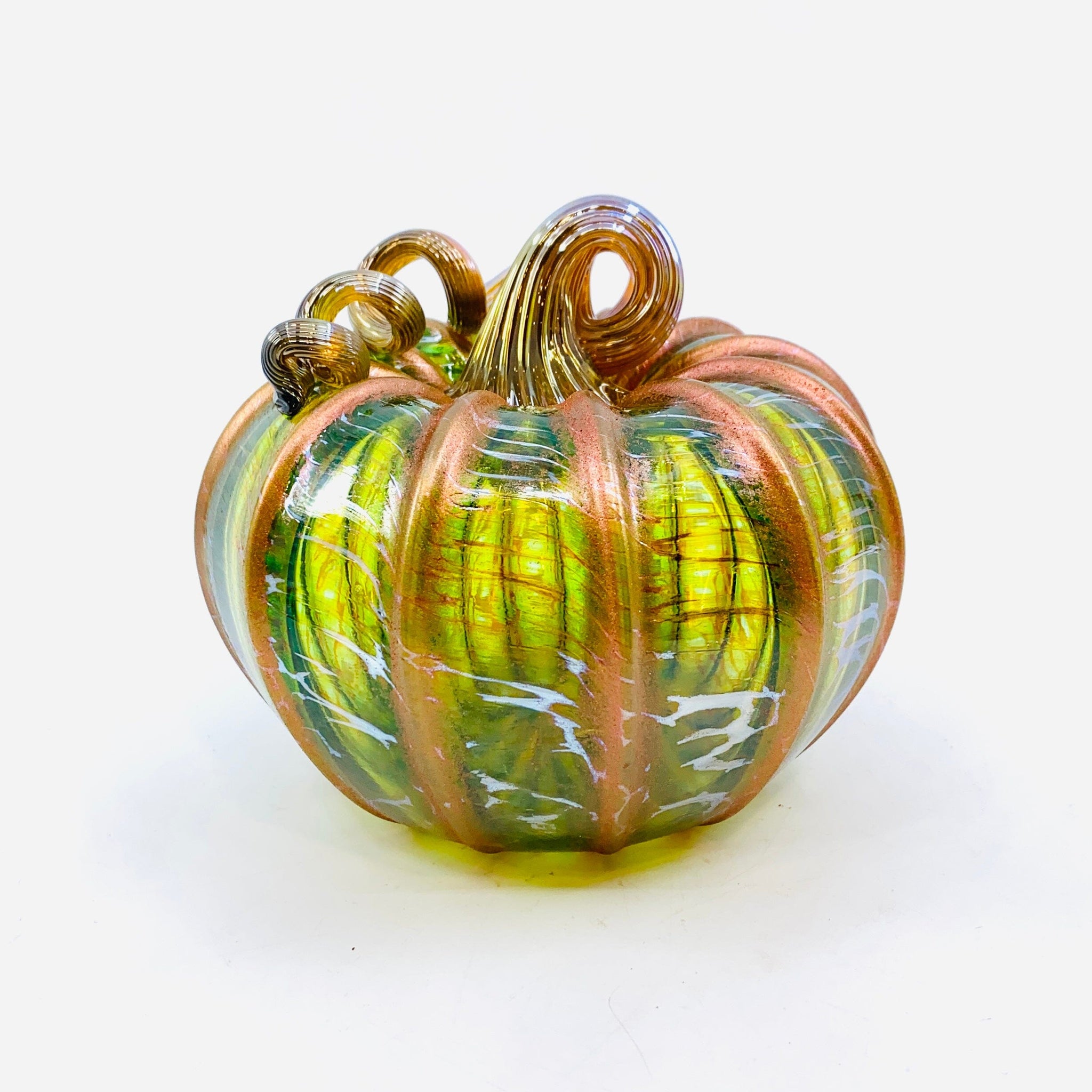 What's a daily pumpkin? Daily pumpkins are artfully created by our team of glassblowers. Shapes, sizes, colors, and patterns are at their whim! New pumpkins are posted... you guessed it... daily! Please be aware that descriptive terms (i.e. mini, squat) refer to shape more so than dimensions of our daily pumpkins due to the individuality of these pieces. Size and uniformity may vary.
